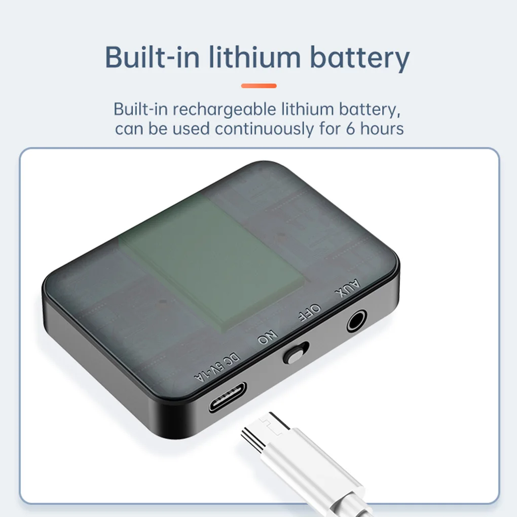 Recargable: Batería de litio incorporada, este adaptador de audio inalámbrico admite aproximadamente 6 horas de uso.