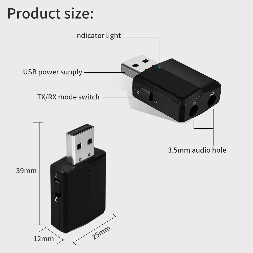 • Adaptador 3 en 1:Este adaptador puede transmitir, recibir y convertir señales de audio, lo que lo convierte en una herramienta versátil para sus necesidades de audio.