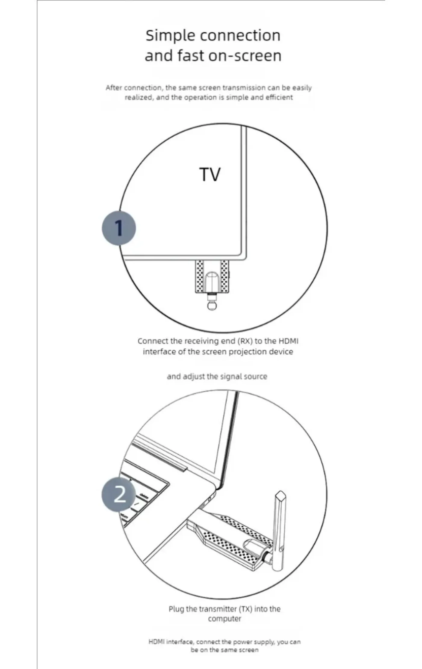 1.Transmisión de audio y vídeo HDMI a través del protocolo de transmisión inalámbrica incorporado, sin necesidad de wifi ni Internet