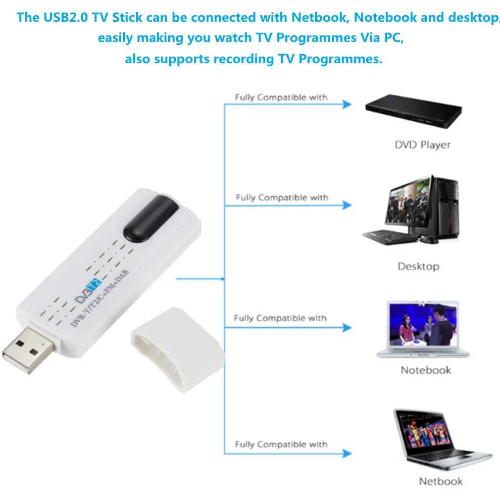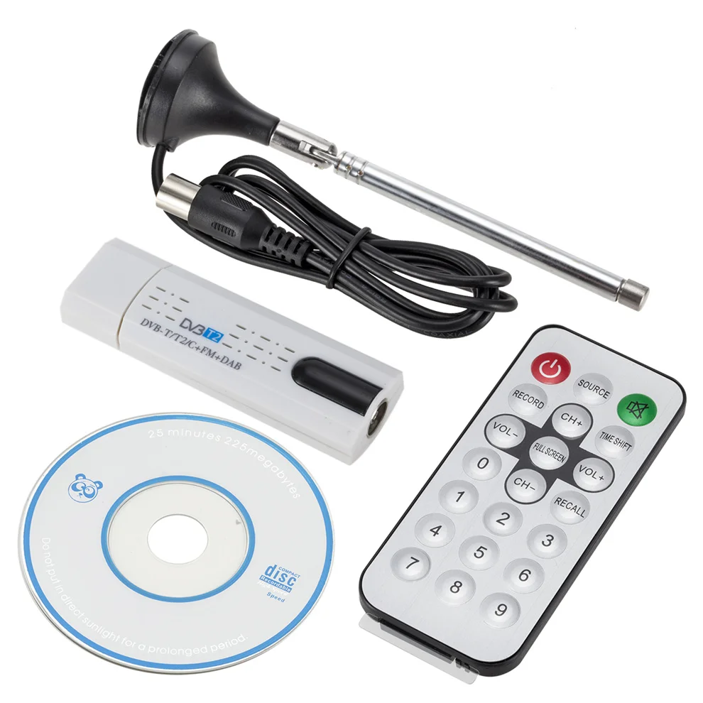 Comprar Receptor de TV Digital por satélite, sintonizador USB con antena remota HD, DVB-T, DVB-T2, FM, DAB, para PC, DVB T2