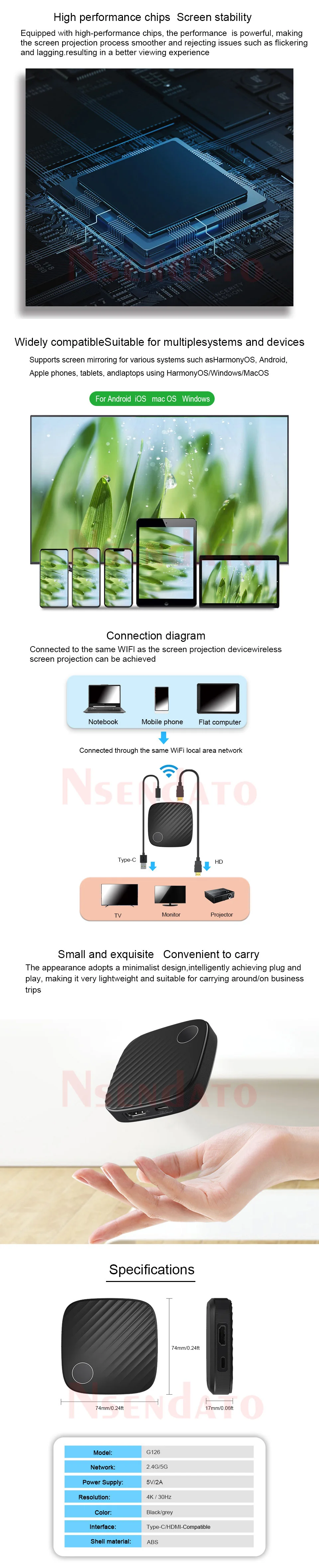 G126 4K Wifi Display Miracast Wireless Airplay Pantalla compatible con HDMI Steam Mirroring TV Receptor Stick Adaptador para proyector de TV