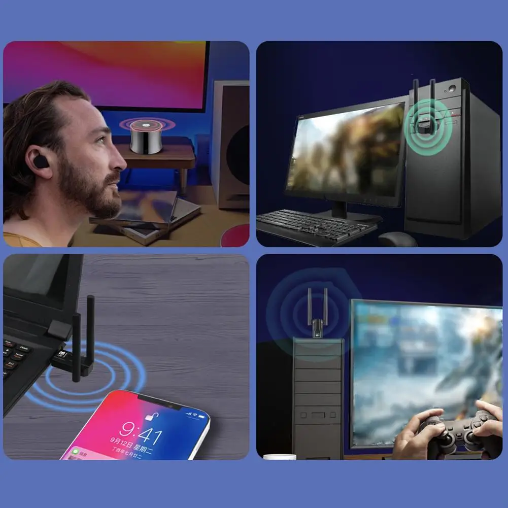 Comprar Receptor USB Bluetooth 5,4 de antena Dual actualizado para PC, USB, Bluetooth, ratón, teclado, Audio, auriculares, transmisor receptor S7Q6