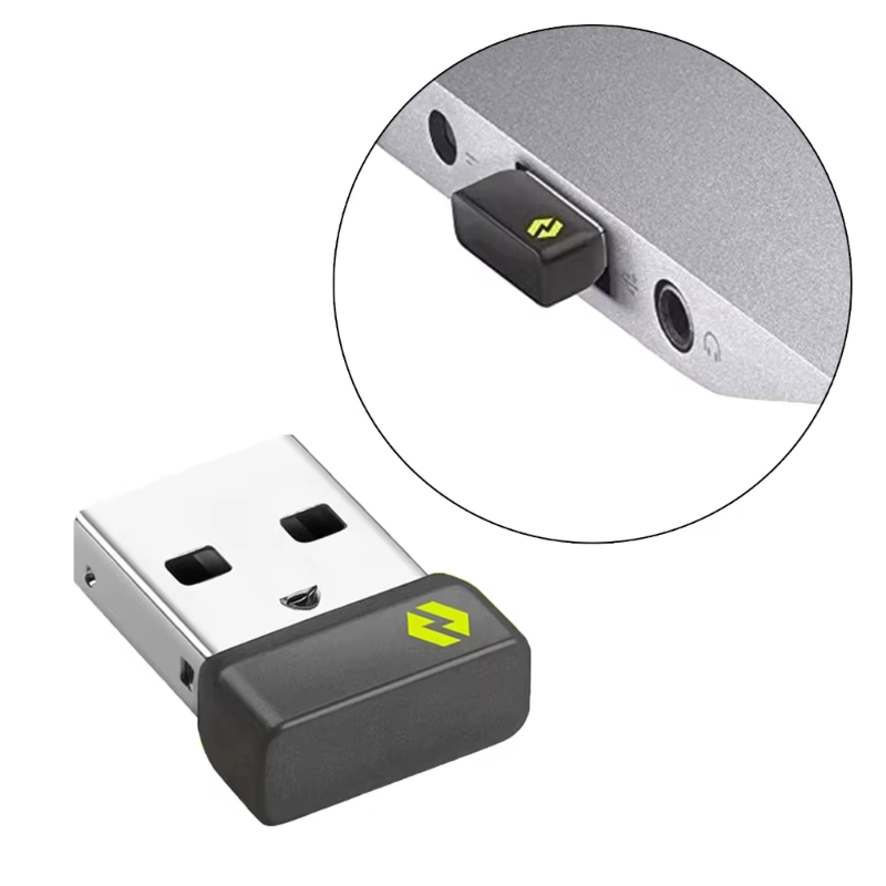 El receptor USB Bolt es discreto y conveniente, lo que le permite mantenerlo instalado en el puerto USB de su computadora sin ningún problema.Lleve su computadora portátil y sus dispositivos conectados a donde lo necesite.