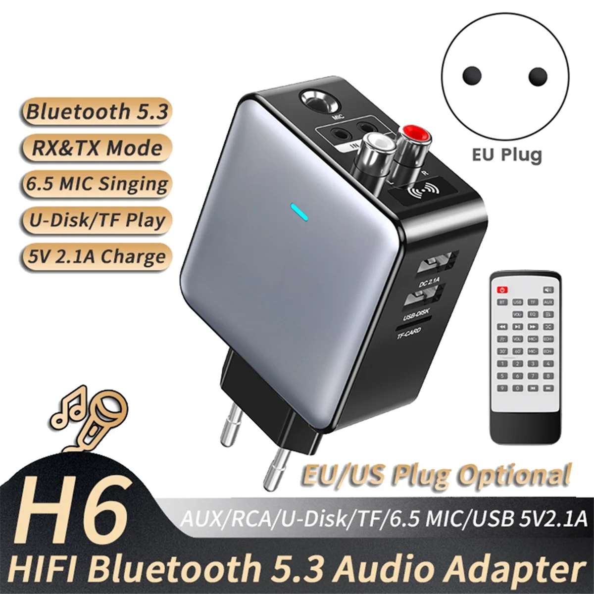 Comprar Receptor y transmisor de Audio con Bluetooth 5,3, adaptador inalámbrico de 3,5mm, AUX/RCA/TF/USB, estéreo HIFI para Karaoke, enchufe europeo
