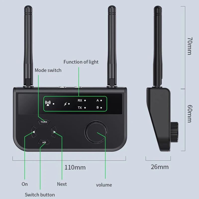 Modo transmisor para: TV/PC/proyector/amplificador de potencia/caja de TV/auriculares Bluetooth/auriculares/altavoz Bluetooth, etc.