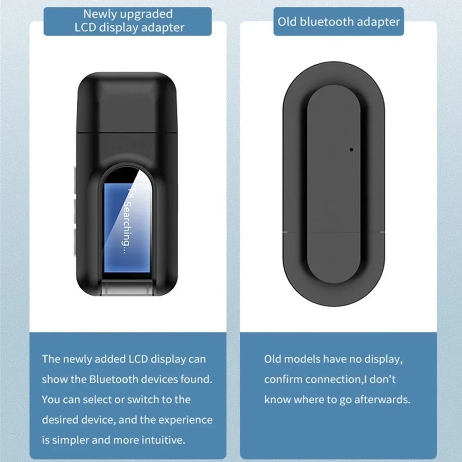 Comprar Receptor y transmisor de Audio USB con Bluetooth 5,0, pantalla LCD de 3,5 Mm, AUX, RCA, adaptador inalámbrico estéreo, Dongle para PC, TV, auriculares de coche