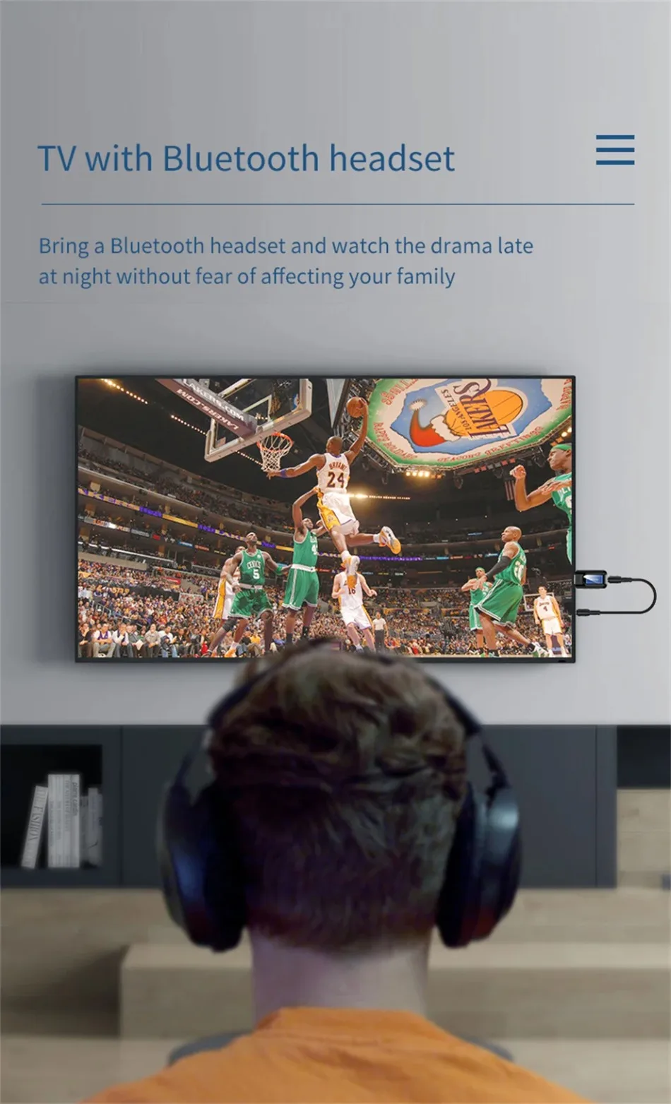 6. FUNCIÓN INALÁMBRICA: ¿Quieres ver partidos de fútbol/béisbol/Boxeo/Golf / NBA a altas horas de la noche sin despertar a nadie? Esta es una gran elección para ti. La Función de transmisor Bluetooth transmite audio de forma inalámbrica a altavoces Bluetooth o auriculares desde su televisor o dispositivos multimedia más antiguos como reproductores de CD portátiles que carecen de Bluetooth incorporado.