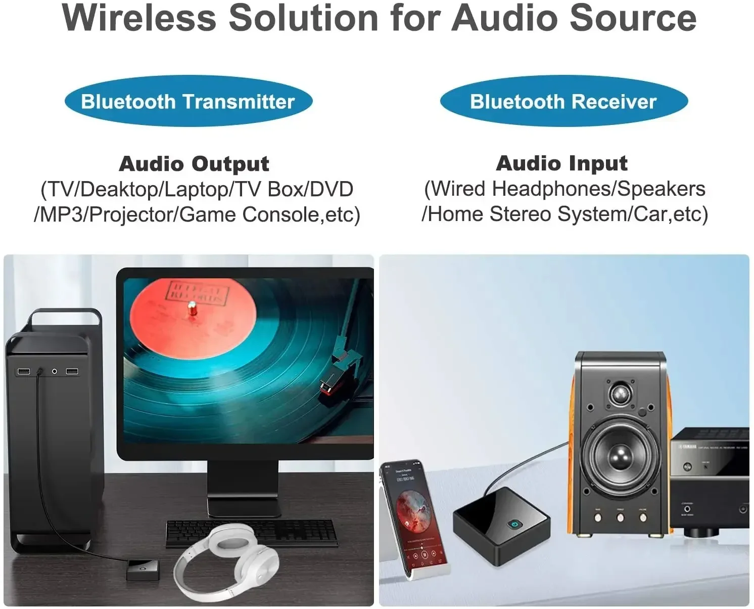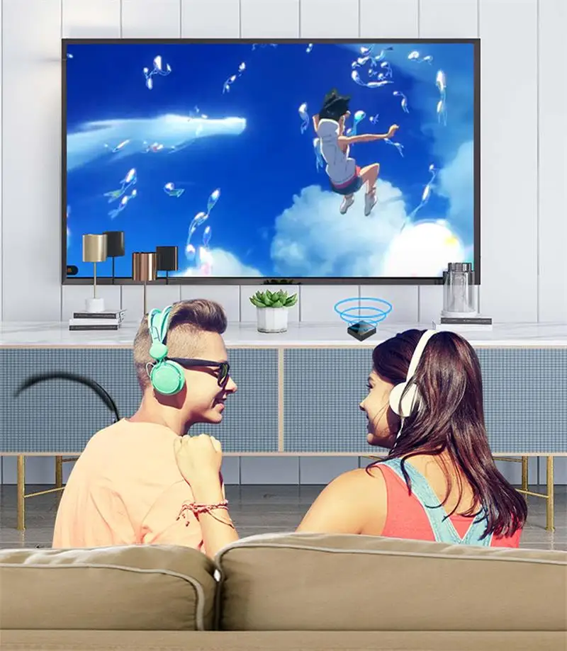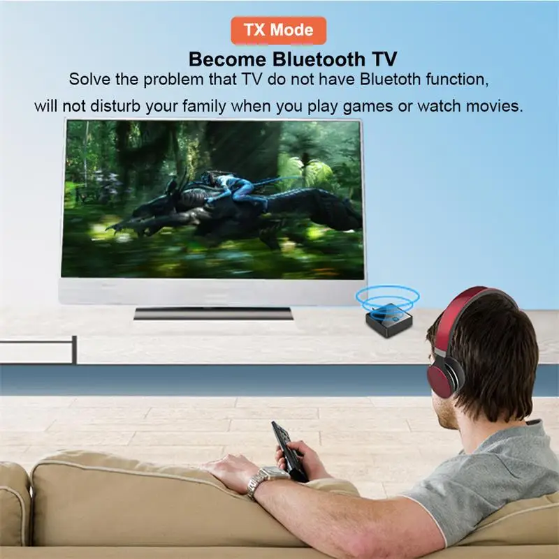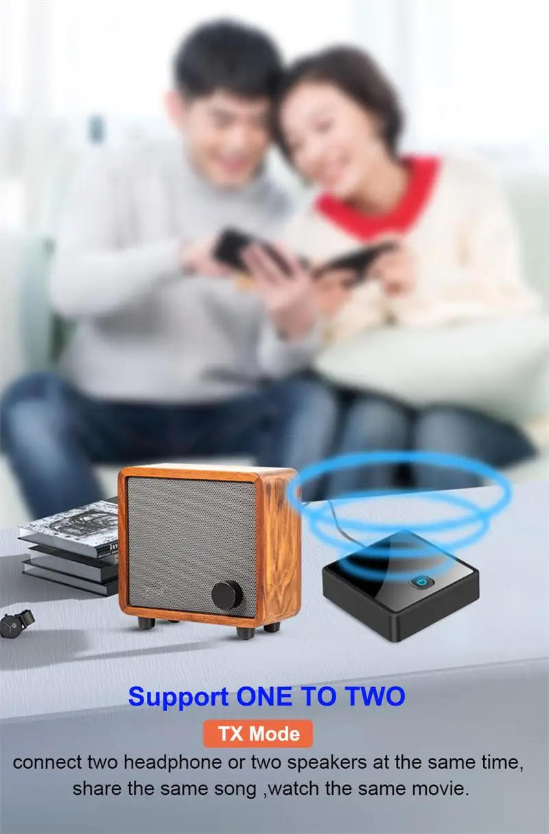 1 Modo transmisor: transmite audio desde fuentes de audio que no son Bluetooth (TV, PC, TV Box, reproductor de CD/DVD, proyector, etc.)a auriculares/altavoces Bluetooth.