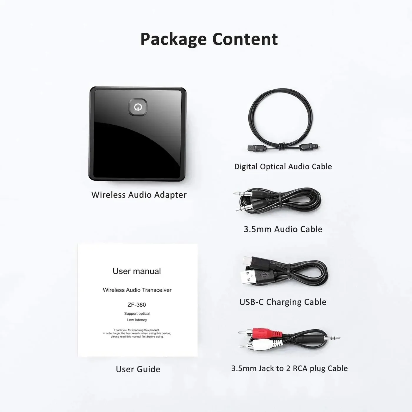 Comprar Receptor y transmisor Bluetooth 5,0, baja latencia, conector auxiliar de 3,5mm, adaptador de Audio inalámbrico de música estéreo óptico para PC, TV, altavoz para coche