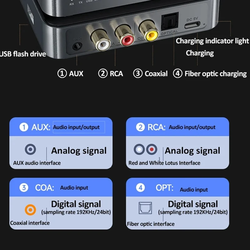 5. La señal digital incorporada al chip analógico admite fibra óptica digital, coaxial, interfaces AUX y RCA.