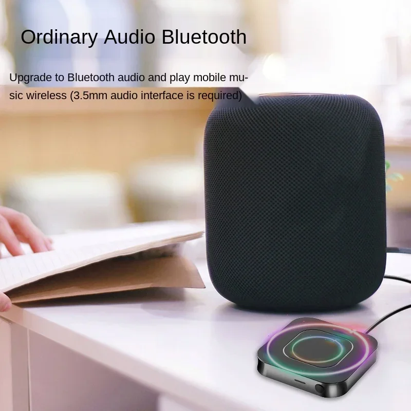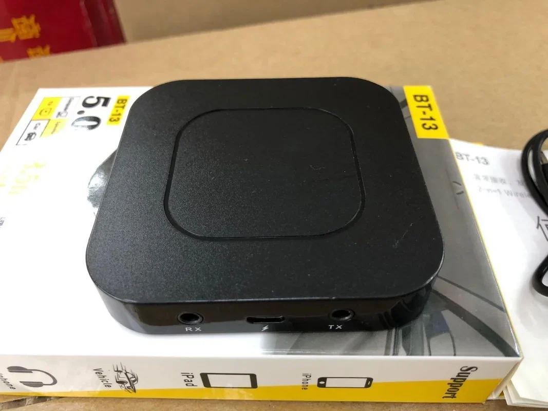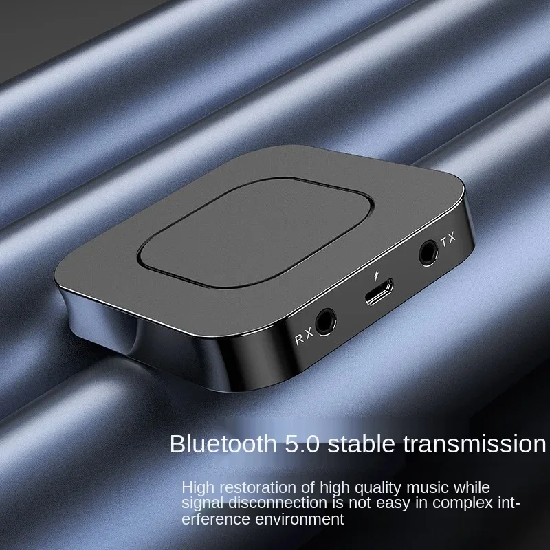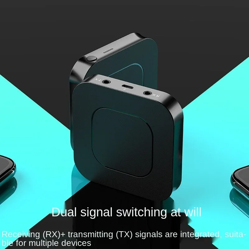 El transmisor está conectado al puerto de audio de un teléfono móvil, como una computadora de TV, a través de un adaptador de 3,5mm para transmitir señales, que se puede conectar con un auricular Bluetooth y un altavoz Bluetooth para su uso.