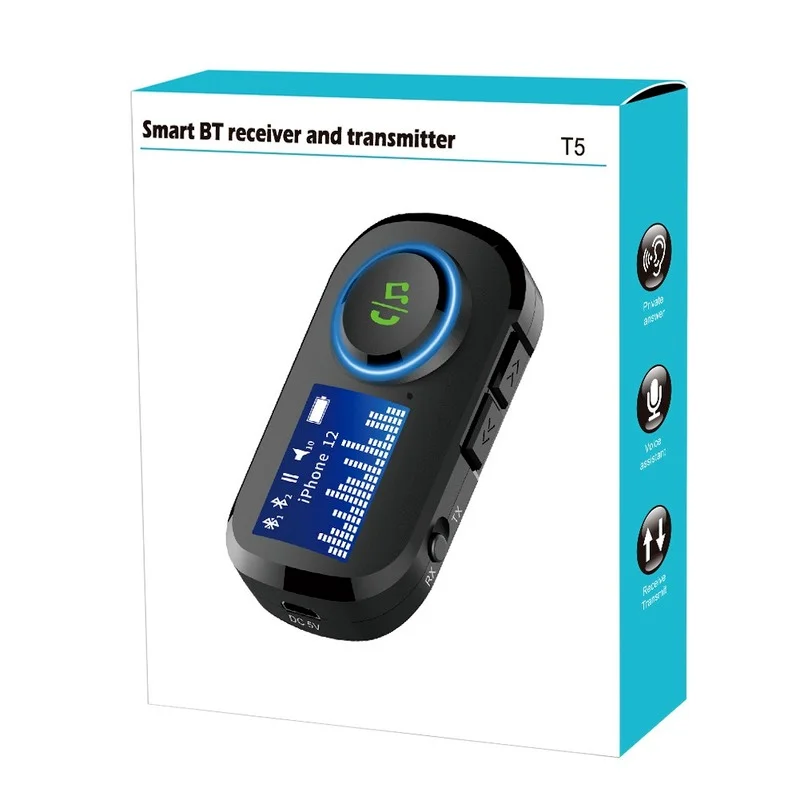 Comprar Receptor y transmisor Bluetooth T5 Combo con pantalla batería integrada 3,5mm Adaptador de Audio Bluetooth 5,0