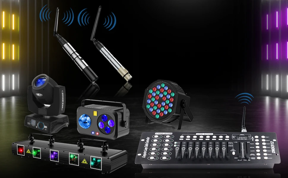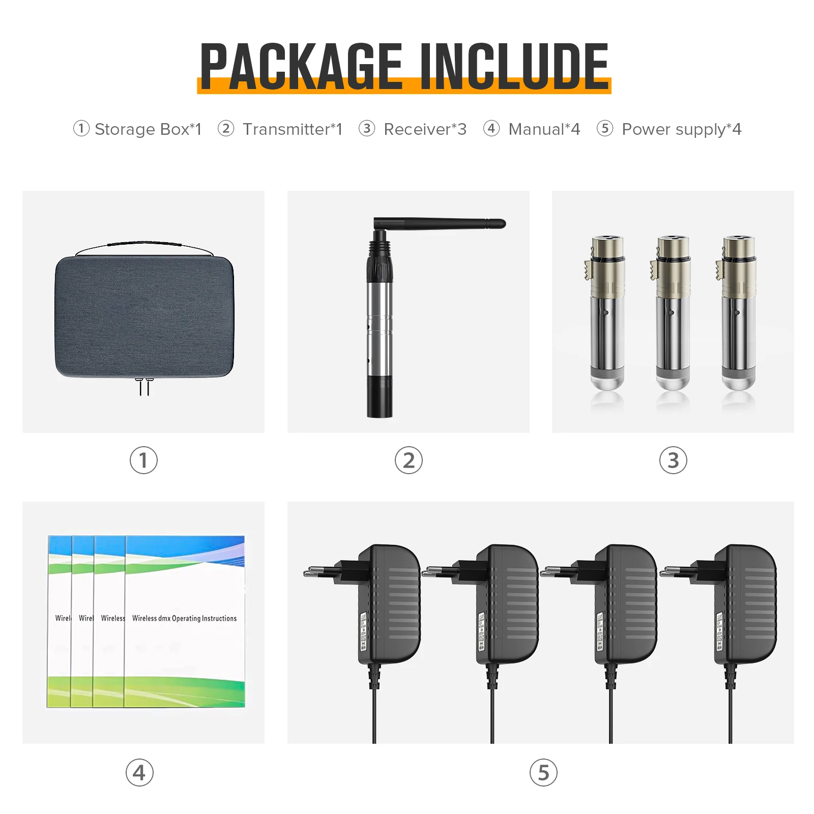Comprar Receptor y transmisor de consola inalámbrico U'King DMX con estuche, equipo de escenario profesional para Control de iluminación de escenario