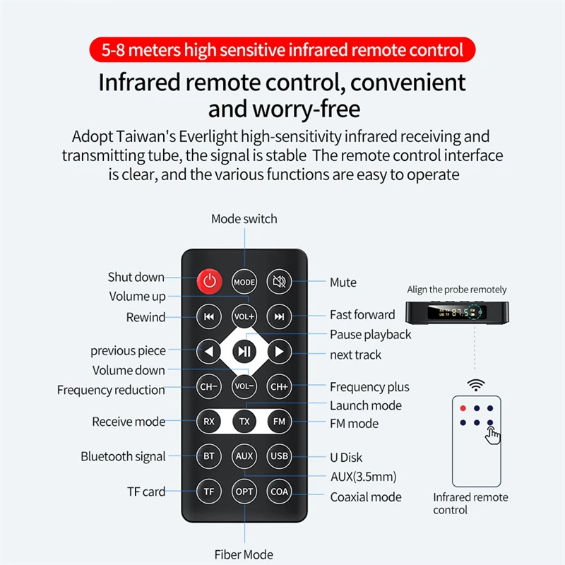 Admite control remoto infrarrojo de 5 ~ 8 metros, todo tipo de funciones están disponibles.