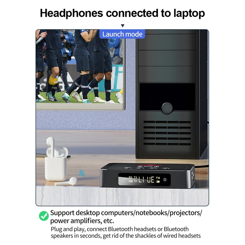 NFC USB compatible con Bluetooth 5,0 Transmisor Receptor 3 en 1 Adaptador Dongle AUX para Home TV PC Audio con pantalla digital LED