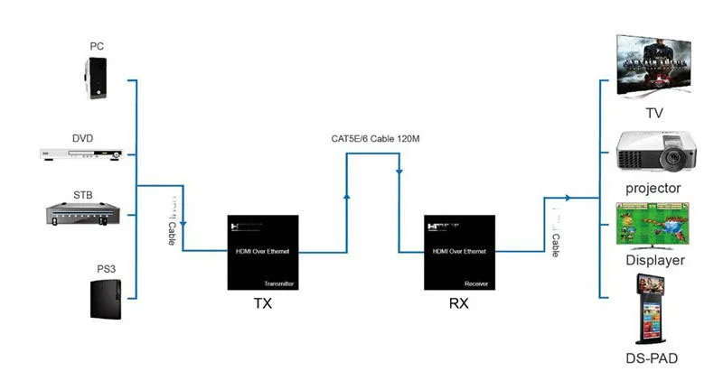 Nota:Este es un extensor compatible con HDMI basado en TCP/IP, hay 2 opciones para que elijas:Elección 1: solo receptor (si no tiene transmisor, no funciona. Asegúrese de que ya tenga un transmisor)Elección 2: un conjunto de transmisor + receptorIntroducción:El extensor compatible con HDMI Over Ethernet se basa en el estándar TCP/IP.Transmite su pantalla HD con altas resoluciones de hasta 395 pies (120 metros) de distancia de su fuente HDMI o DVI-D mediante el uso de un cable CAT5e/6.Con la ventaja del estándar TCP/IP, puede ampliar su vídeo HD a múltiples pantallas utilizando un conmutador Ethernet.Características:Siguiendo el estándar TCP/IP.Admite protocolo 1.3 compatible con HDMI.Cumple con los protocolos HDCP1.1 y 1.2Admite modo punto a punto, modo uno punto a muchos y modo de conexión en cascada.La función de extensor de infrarrojos de soporte permite el control remoto por infrarrojos de los dispositivos fuente desde la ubicación de visualización remota enviando comandos de infrarrojos recibidos en las proximidades de la pantalla a los dispositivos fuente.Especificaciones:Resoluciones de HDTV 480p,576p,720p,1080pVelocidad de muestra de audio: 32 kHz, 44,1 kHz, 48 kHzControl remoto por infrarrojos 38 kHz; NECCompatible con HDMI 1.3HDCP HDCP 1.2Entrada del adaptador de corriente: 100 V-240 V (50-60 Hz) Salida: 5 V/1 AConsumo de energía Compatible con HDMI Sender: receptor compatible con HDMI de 3W: 3WTamaño (largo-ancho) 92x79x20mmPeso 240 g x 2Nota: incluye un cable receptor/remitente de infrarrojos y un cargador de enchufe de EE. UU., si desea un enchufe de la UE.Después de comprar, envíeme un mensaje a través de eBay a tiempo.para que no lo olvides.gracias
