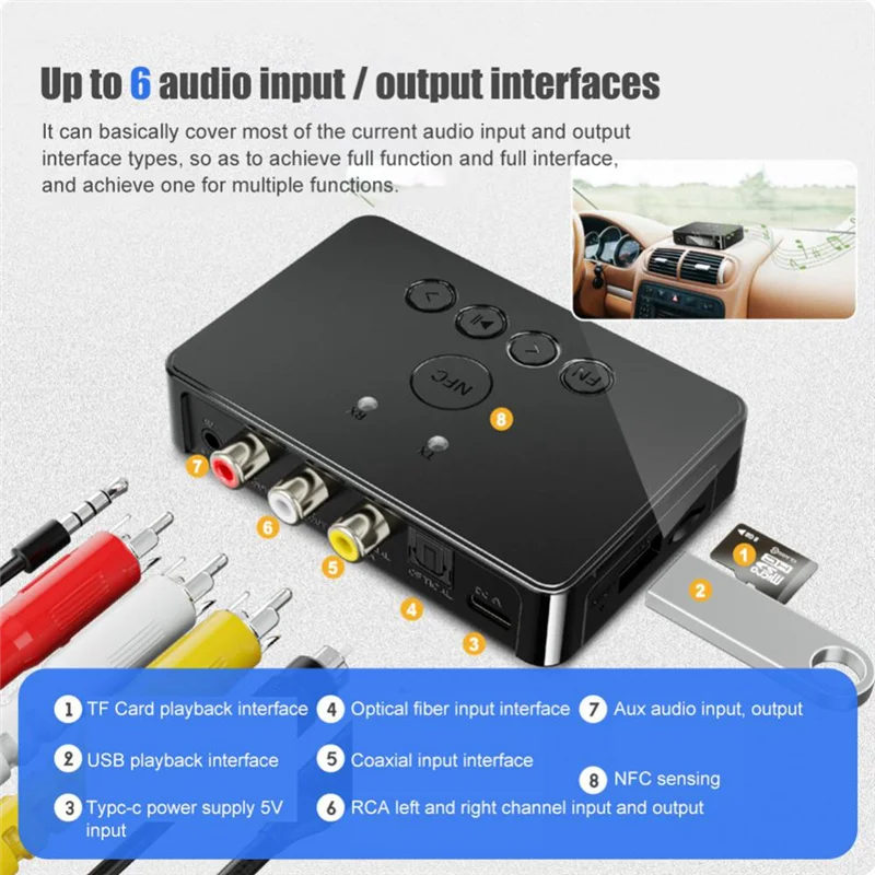 Comprar Receptor y transmisor NFC con Bluetooth 5,0, FM, estéreo, AUX, Jack de 3,5 Mm, óptico, inalámbrico, manos libres, Adaptador de Audio para llamadas, TV