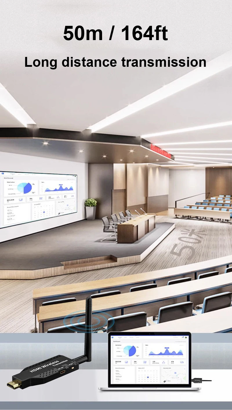 1.Transmisión de audio y vídeo HDMI a través del protocolo de transmisión inalámbrica incorporado, sin necesidad de wifi ni Internet