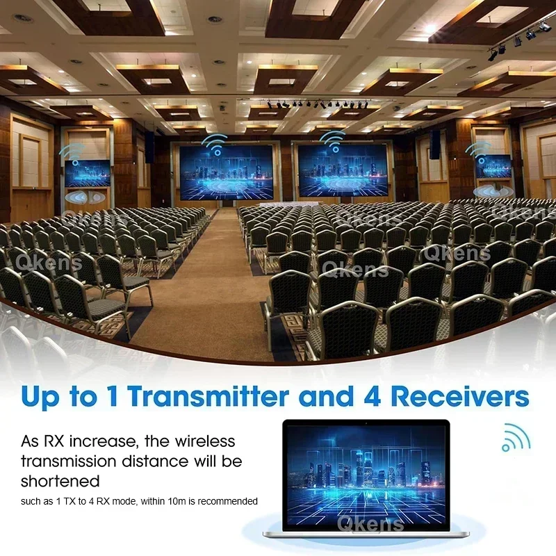 Distancia de transmisión de 1 TX a 4 RX: máx.10m;