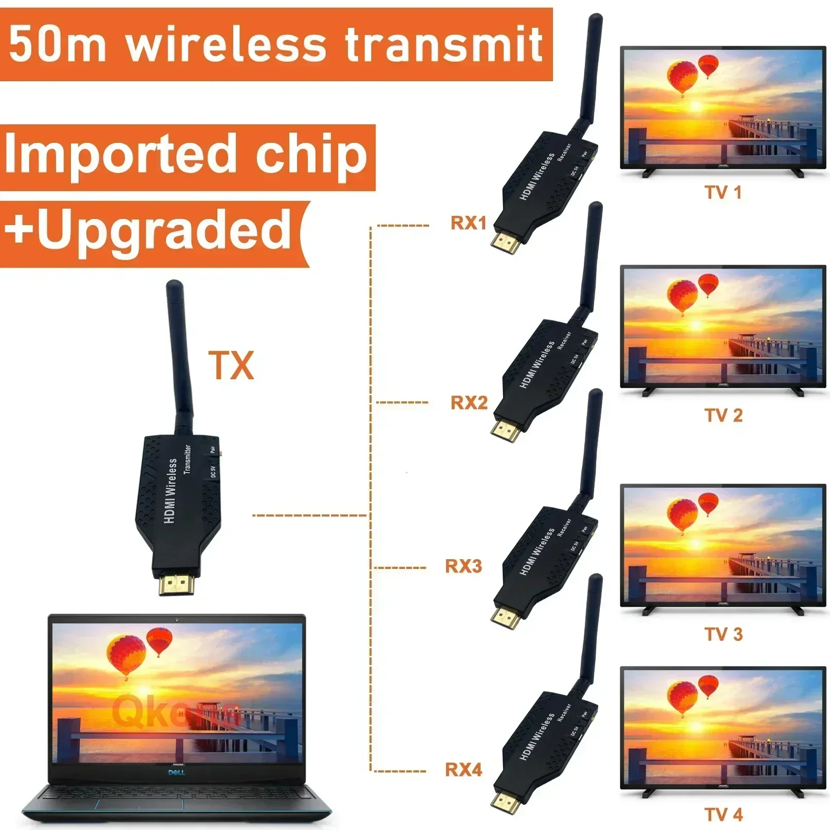 Comprar Receptor y transmisor de vídeo extensor HDMI inalámbrico de 50m, pantalla 1 a 2, 3, 4, 1x4 para TV Box, cámara, portátil, PC, Monitor de TV, proyector