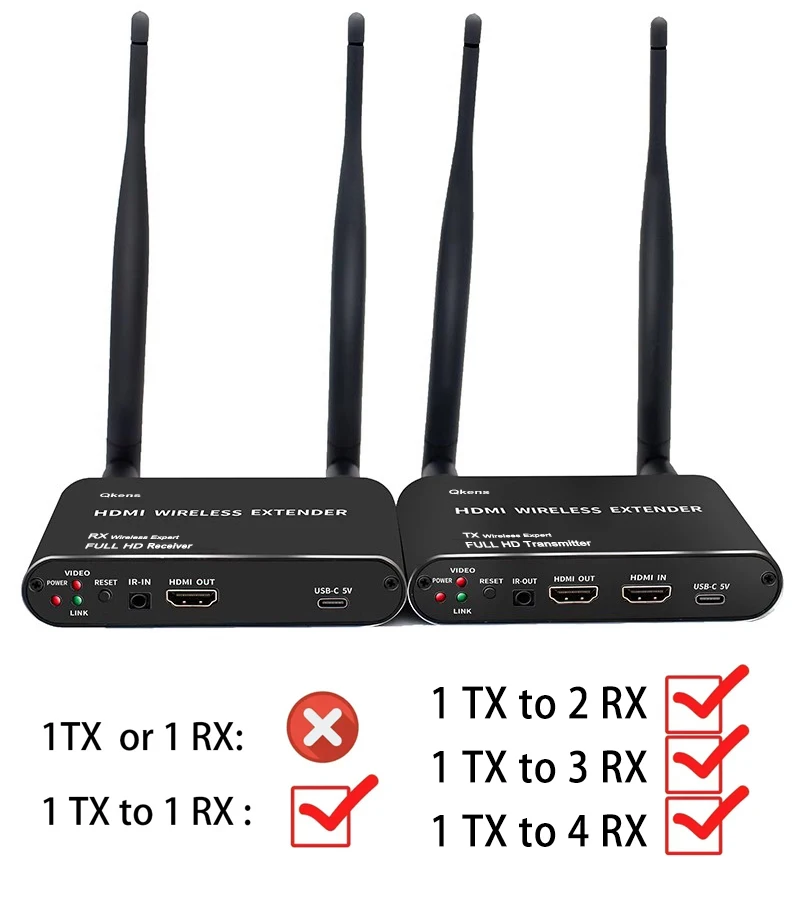 Este extensor inalámbrico transmite señales de audio y vídeo HDMI a través del protocolo de transmisión inalámbrica incorporado.