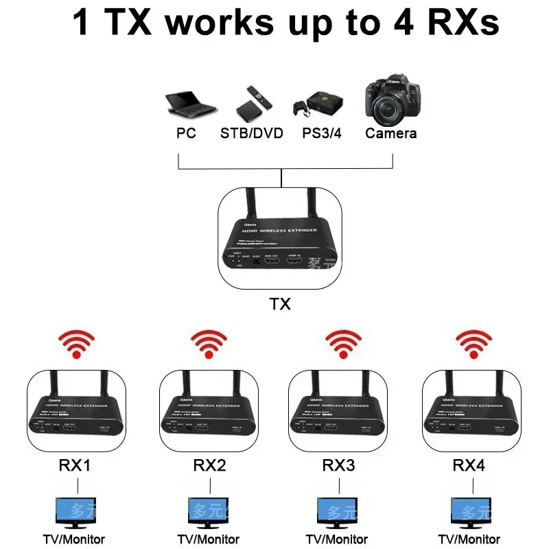 Este extensor inalámbrico transmite señales de audio y vídeo HDMI a través del protocolo de transmisión inalámbrica incorporado.
