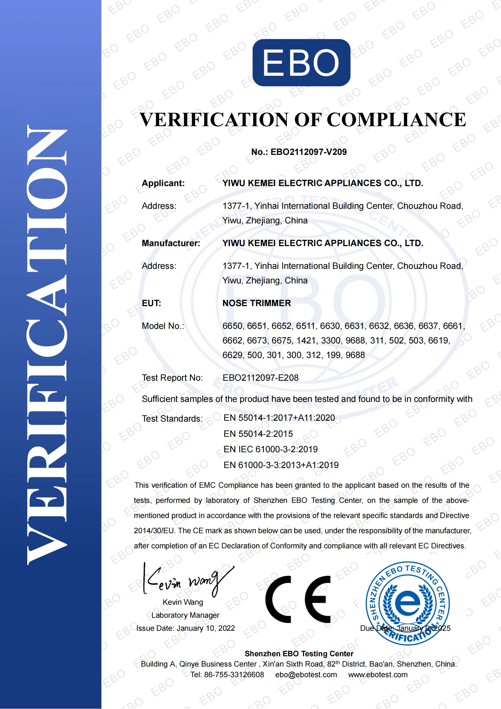 • Certificación CE :Este recortador de nariz ha sido certificado por CE, asegurando que cumple con los estándares de seguridad y calidad.