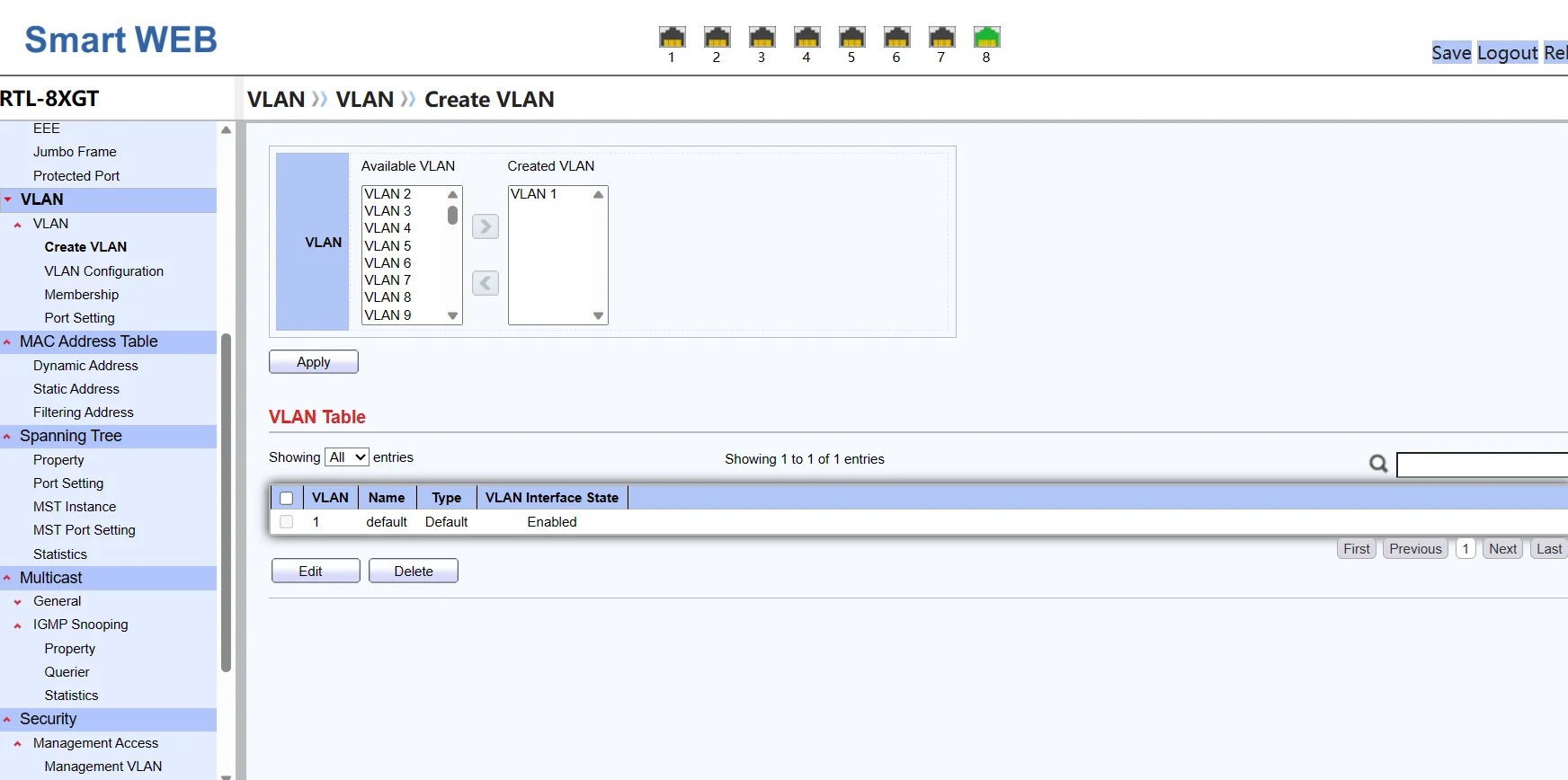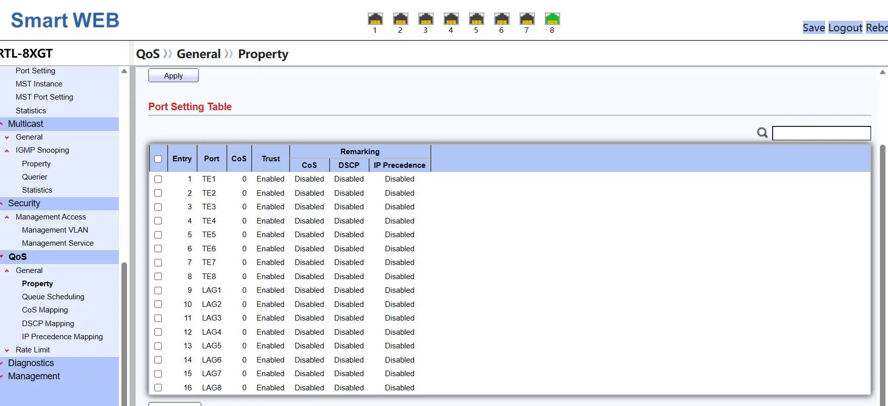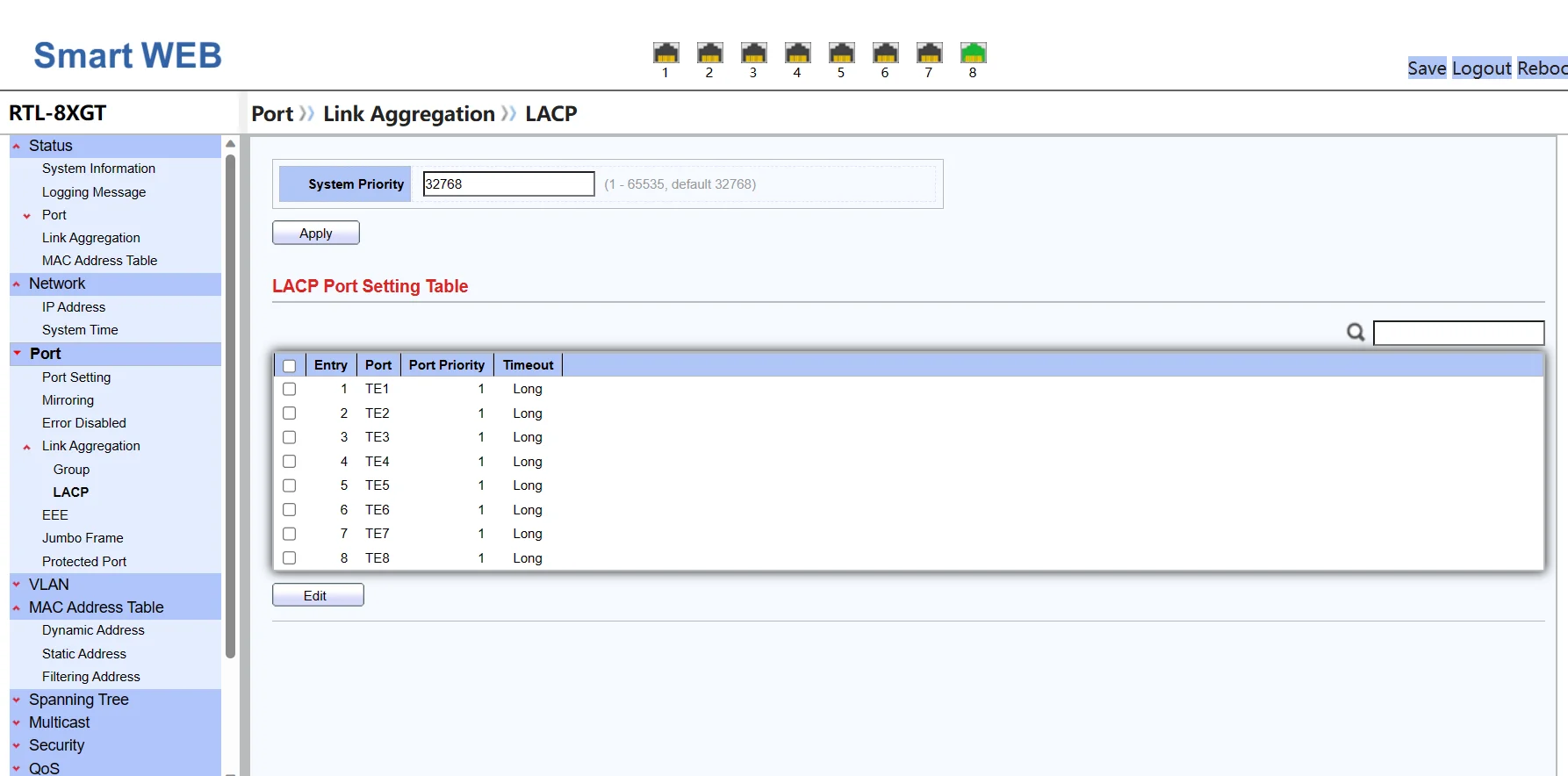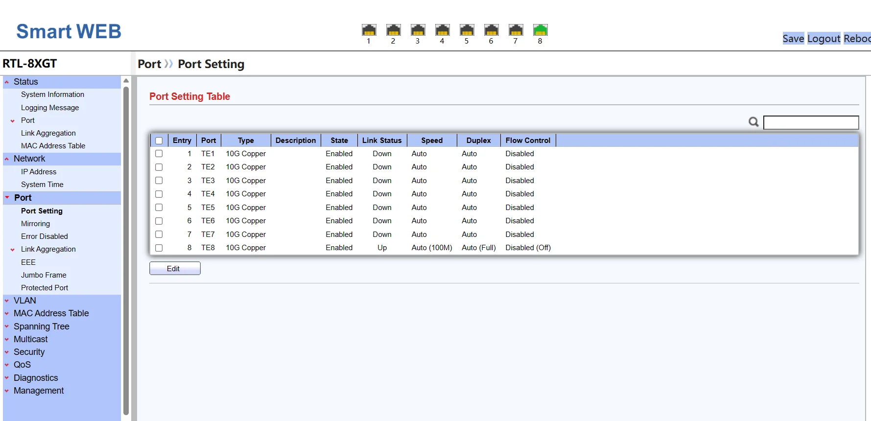 8*10/100/1000/2500/10000Mbps puertos adaptativos RJ45
