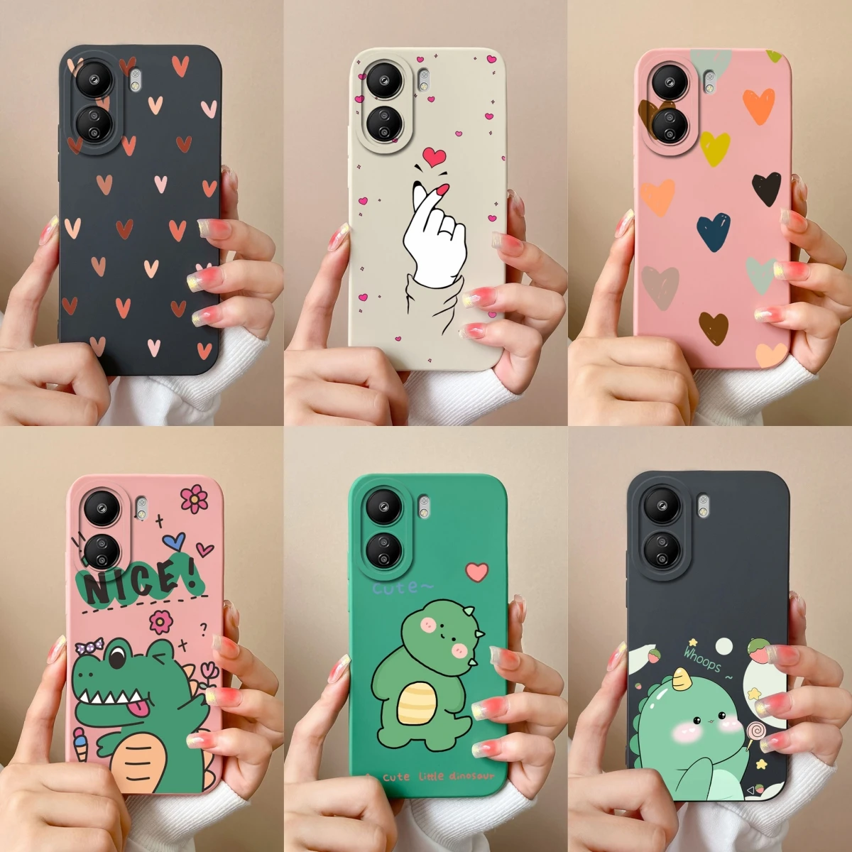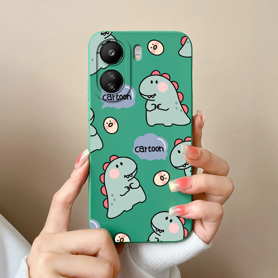 Comprar Para Redmi 13C 13R Note 13R Funda de teléfono lindo dinosaurio Cámara protección suave cubierta de silicona líquida para Redmi 13 C 13R Shell Funda