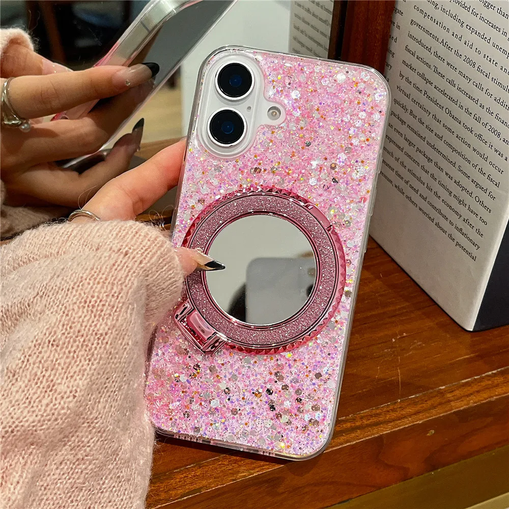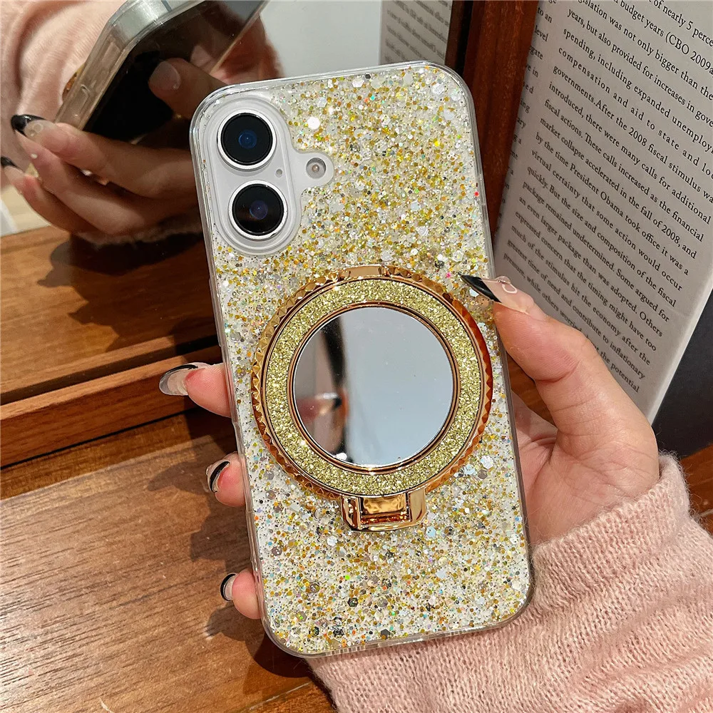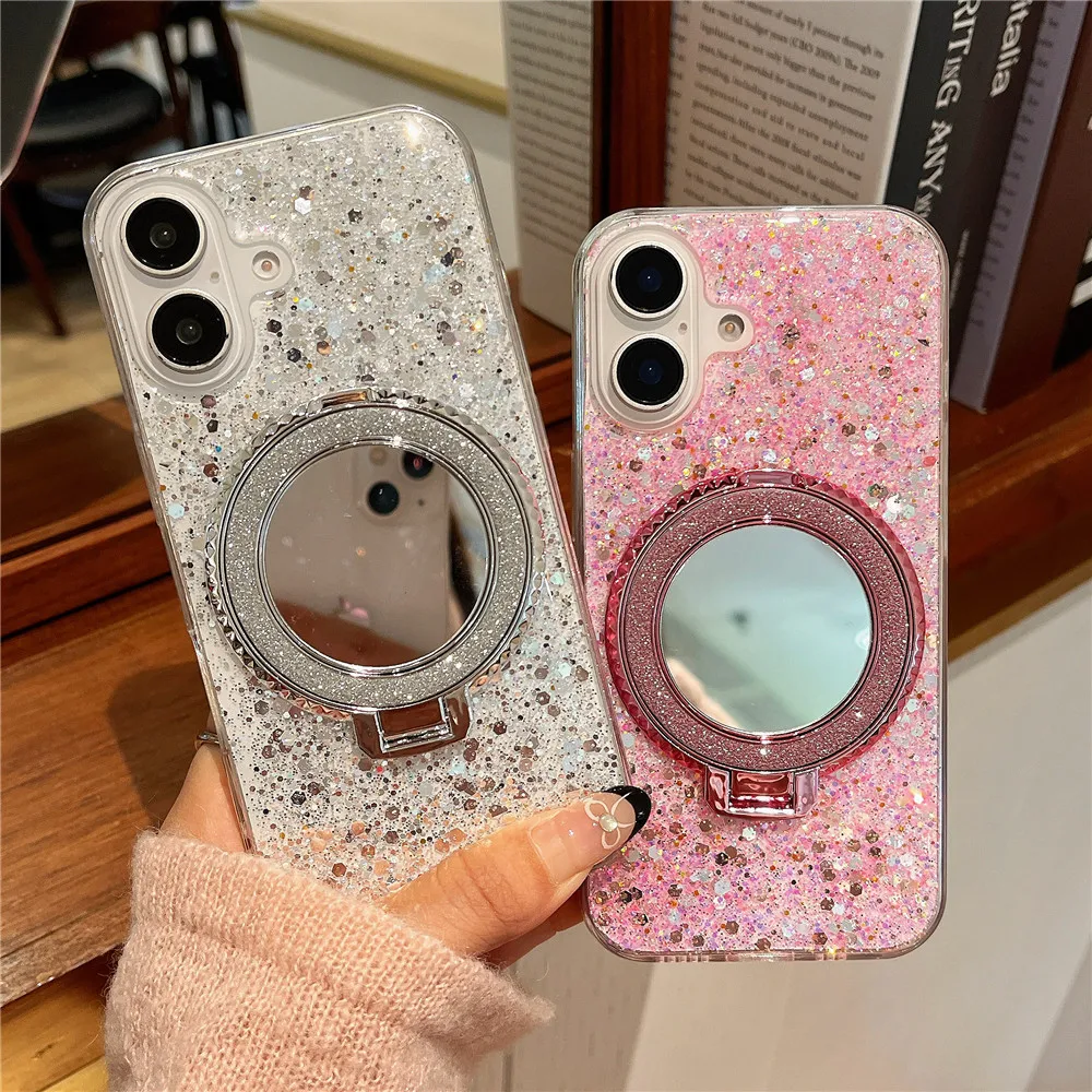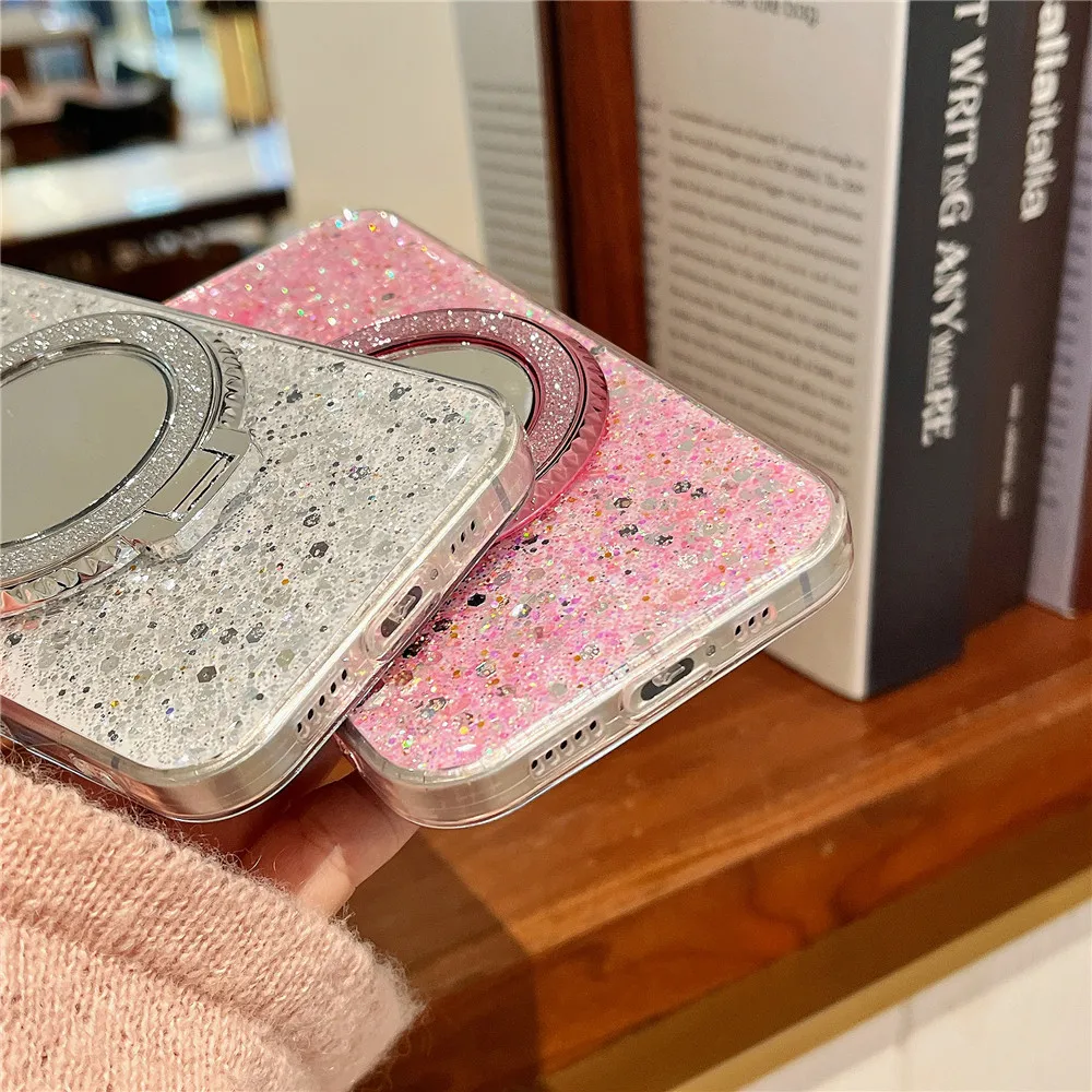 Redmi 14C 14 C funda con soporte de espejo con purpurina y lentejuelas para Xiaomi Redmi 14C 13C 12C 10C 9C A3 13 12 10A 9A funda de silicona suave
