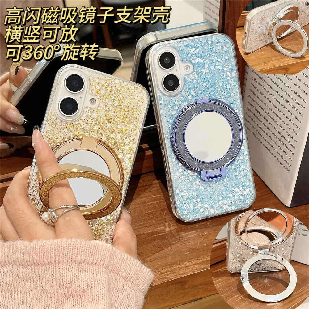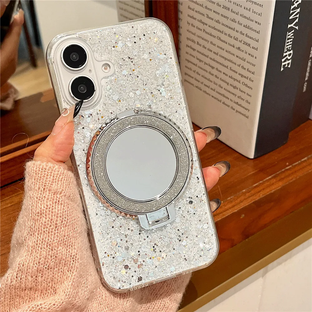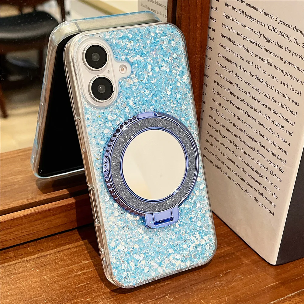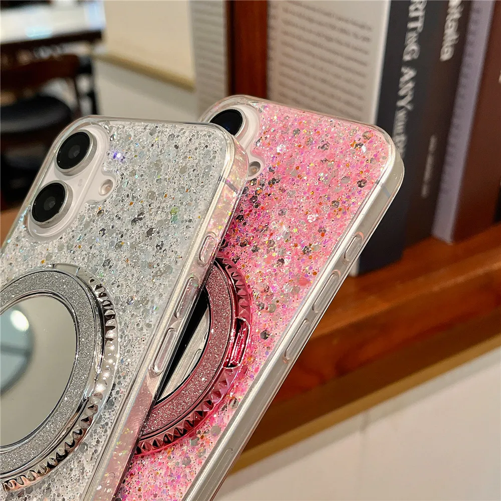 Redmi 14C 14 C funda con soporte de espejo con purpurina y lentejuelas para Xiaomi Redmi 14C 13C 12C 10C 9C A3 13 12 10A 9A funda de silicona suave
