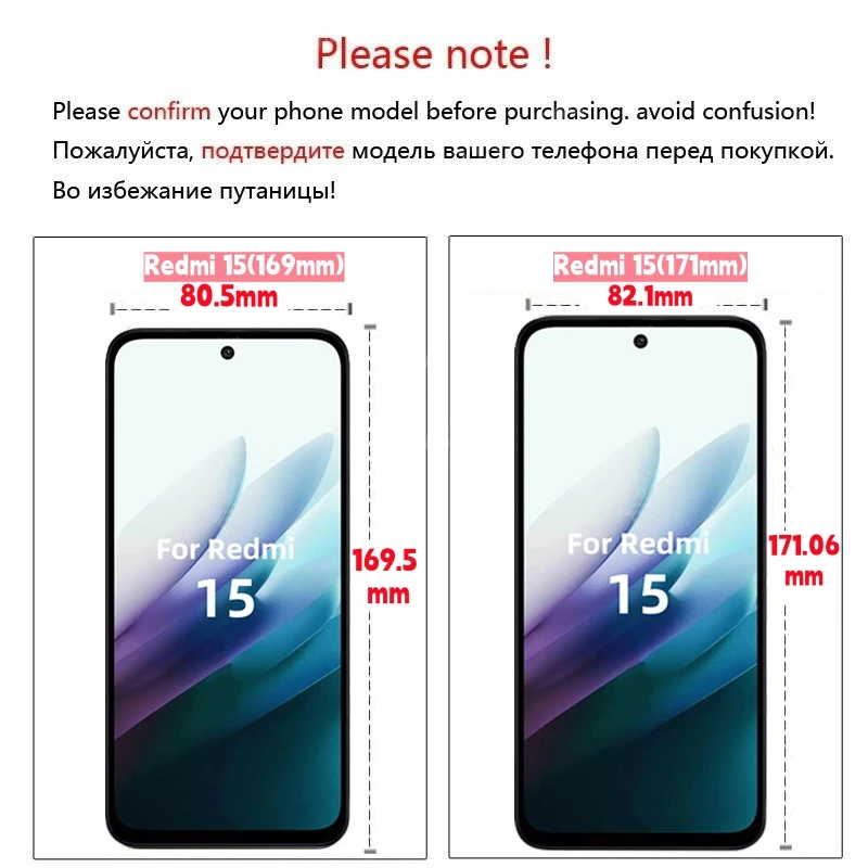 ♦ Nota: Para Redmi 15 tiene diferentes tamaños en diferentes países, elija el modelo según el tamaño de su teléfono móvil.