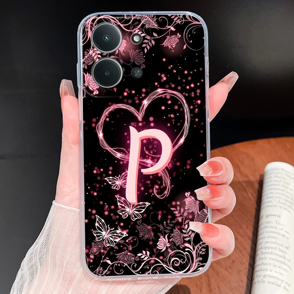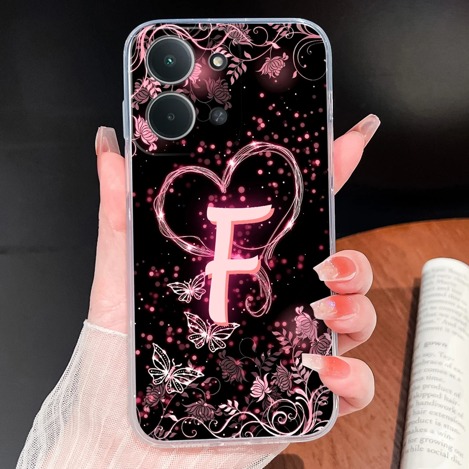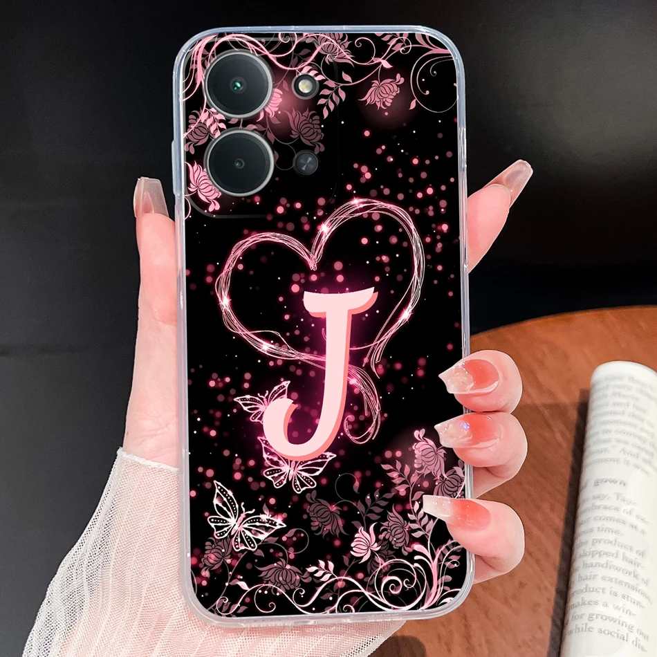 Para Samsung Galaxy A06 4G 5G funda de teléfono letras de corazón rosa suave TPU carcasa de silicona transparente ligera para Galaxy A 06