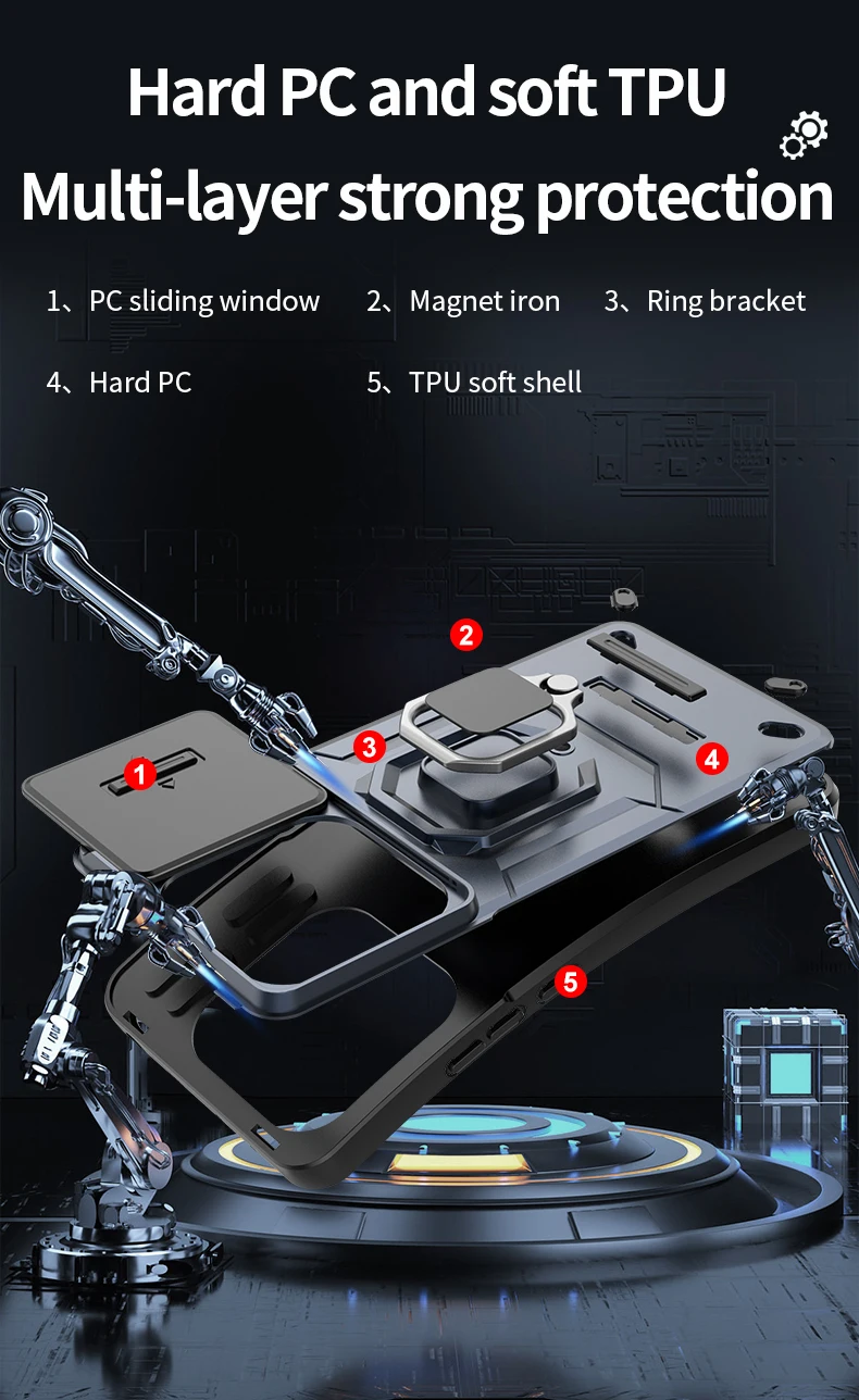 Para Redmi 15C funda para Xiaomi Redmi 15C Fundas soporte de anillo de batalla soporte deslizante Windows funda de teléfono a prueba de golpes Redmi 15C