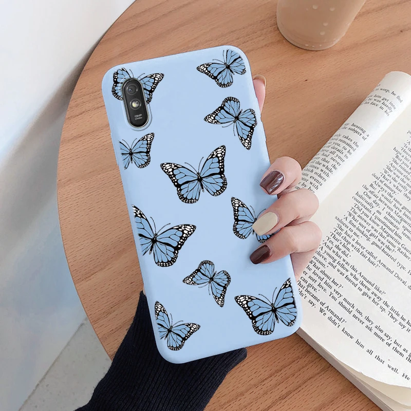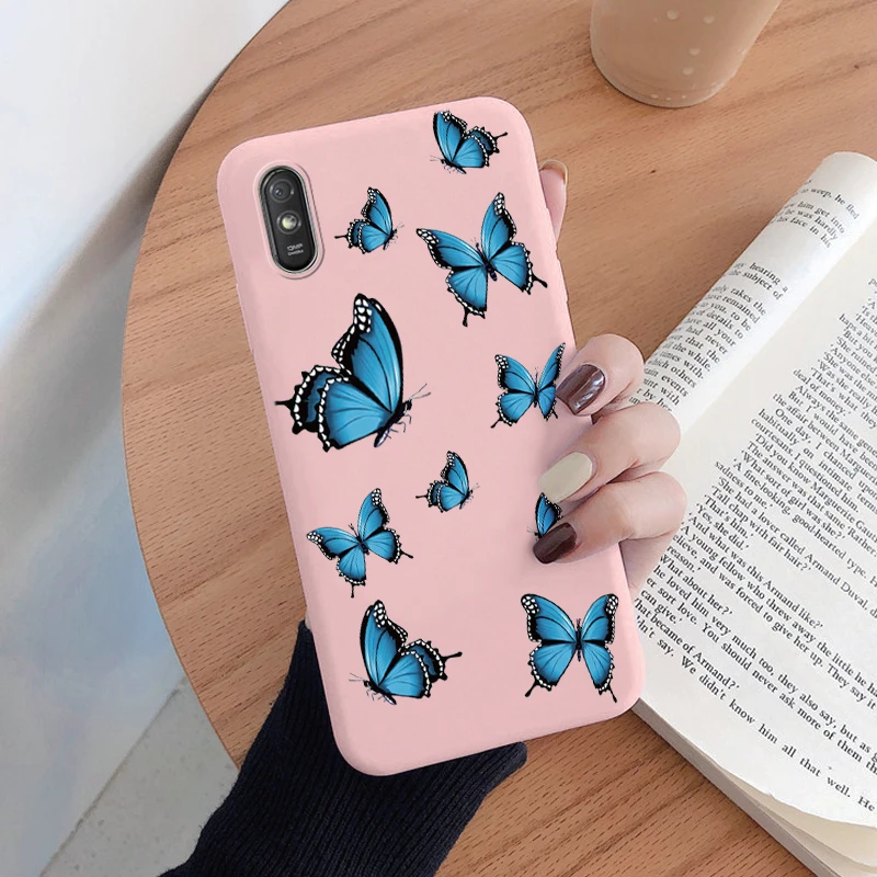 Para Redmi 9A 9AT funda cara colorida lindo corazón suave TPU Fundas a prueba de golpes parachoques teléfono contraportada para Redmi 9A T 9a mariposa