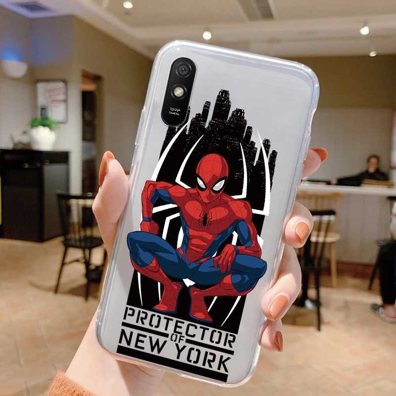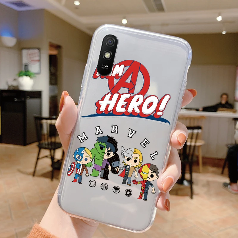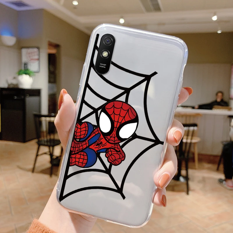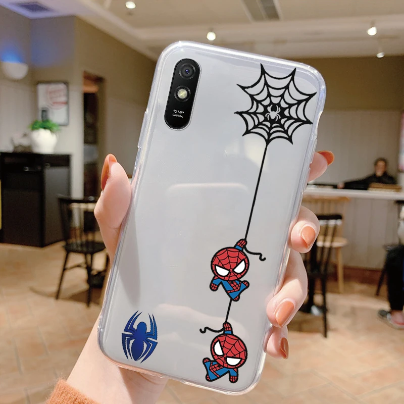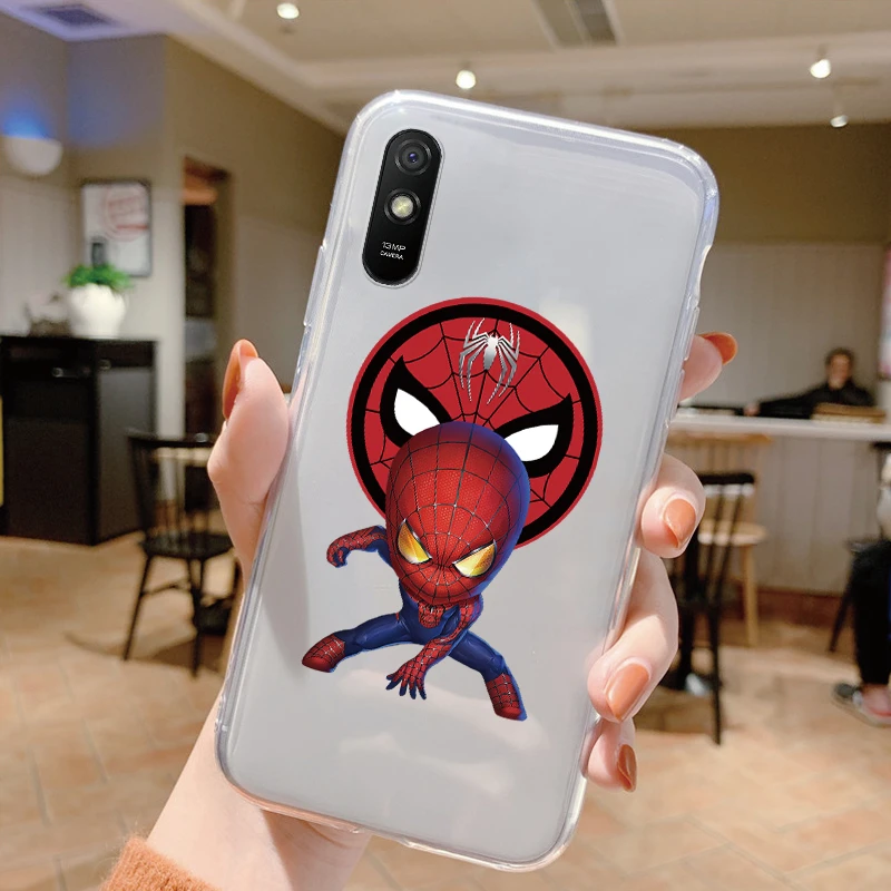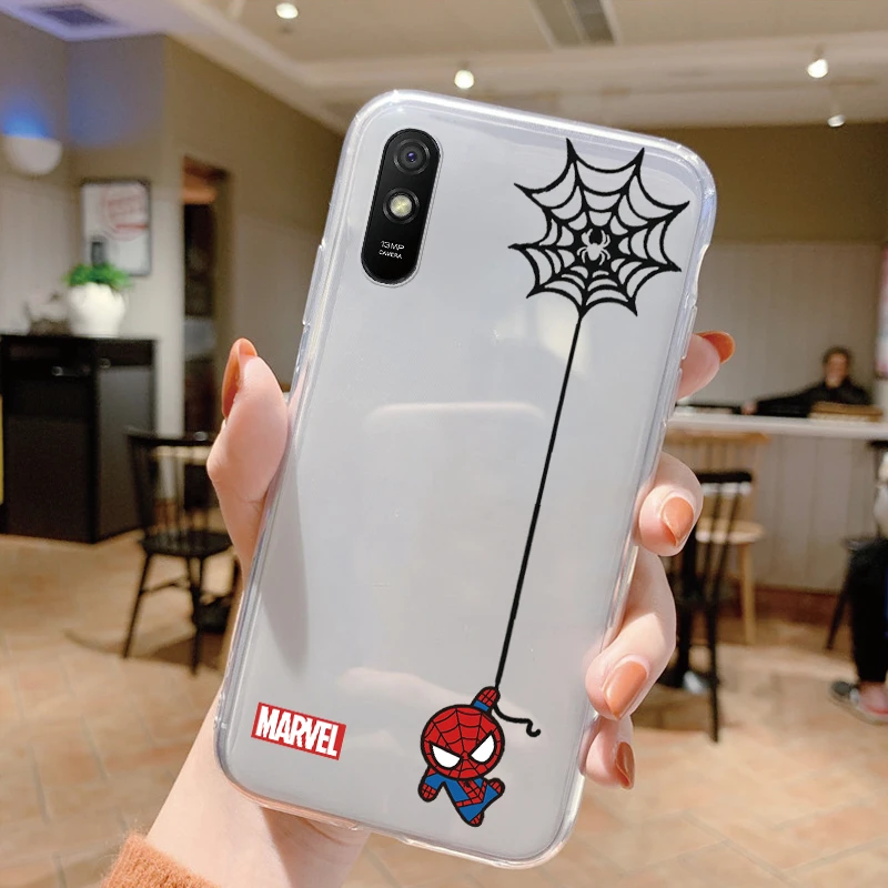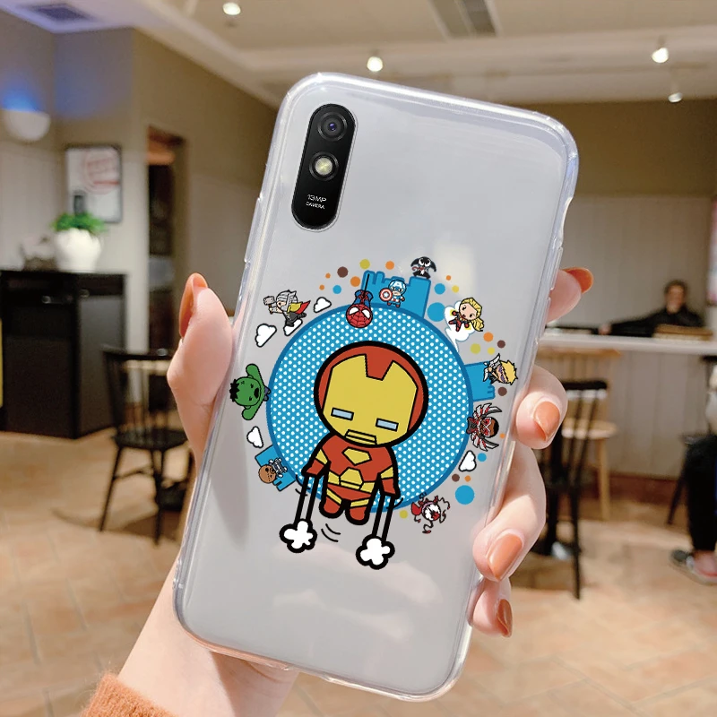 Comprar Para Redmi 9A 9at Funda de teléfono Anime Marvel dibujos animados Funda Shell Capa suave TPU Funda para Xiaomi Redmi 9a Coque Iron Spider-Man transparente