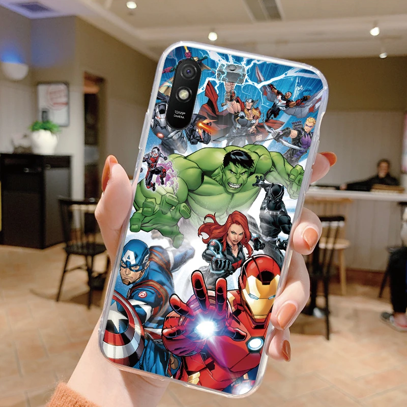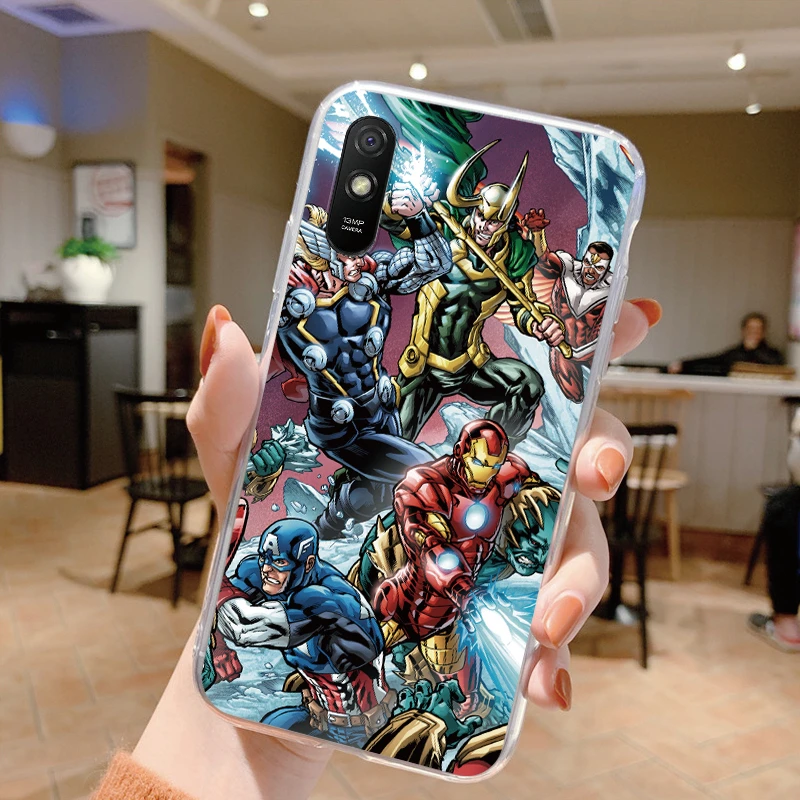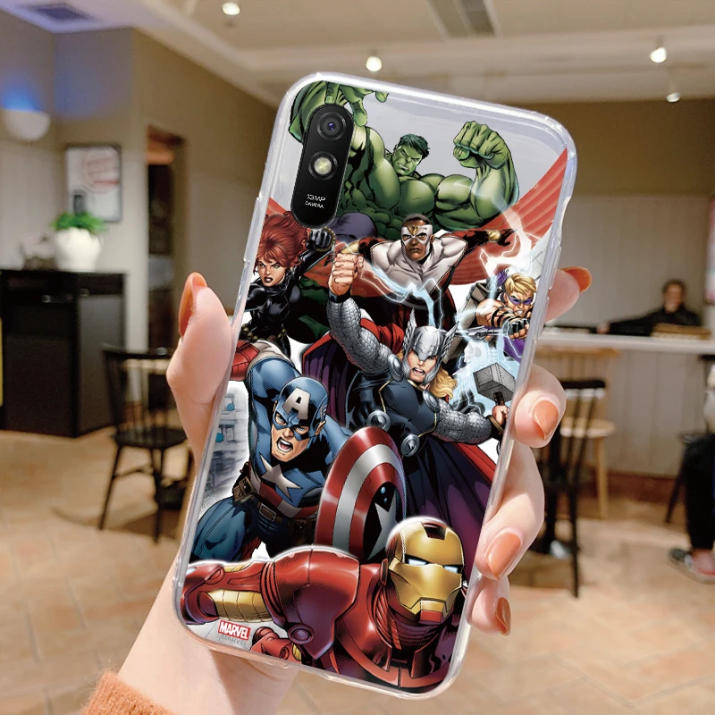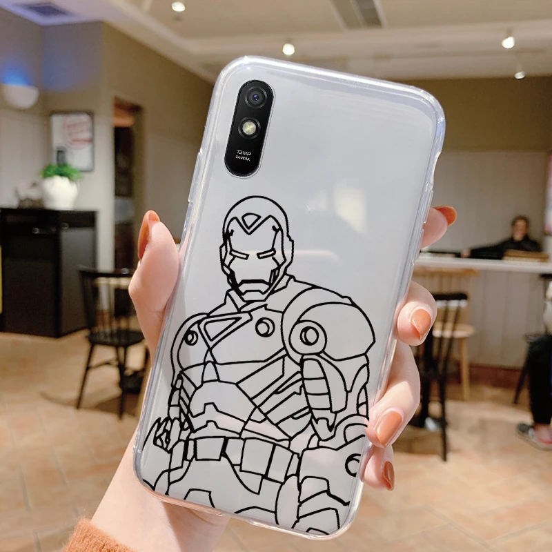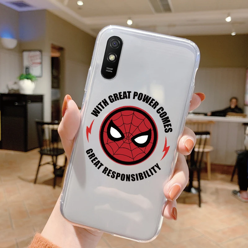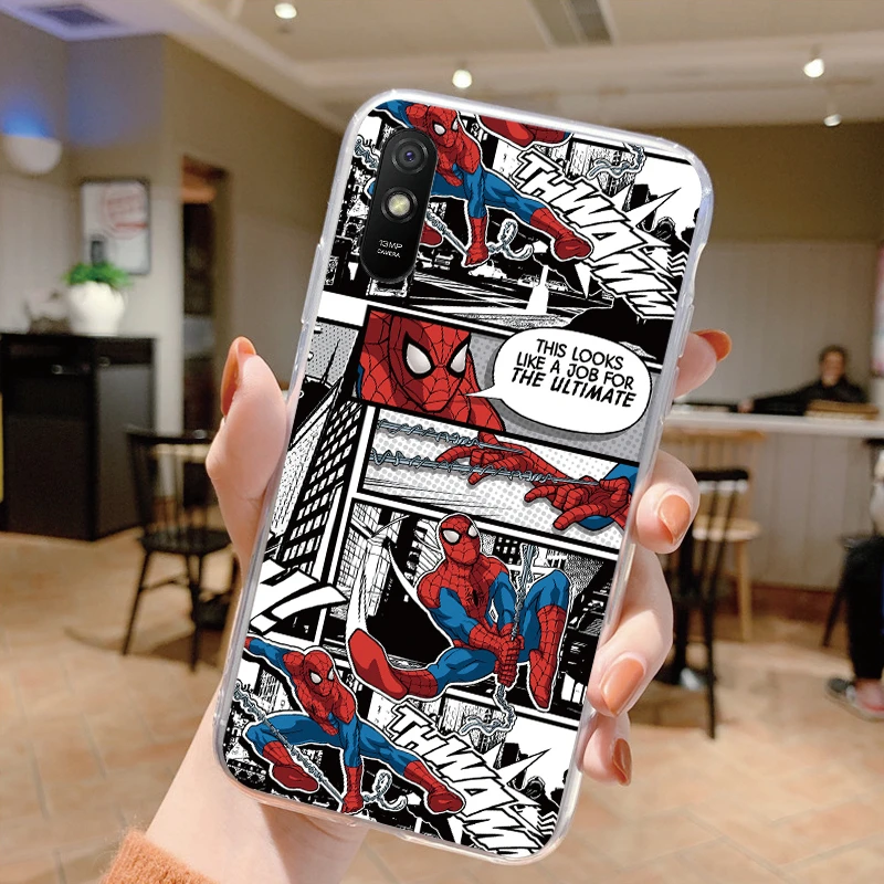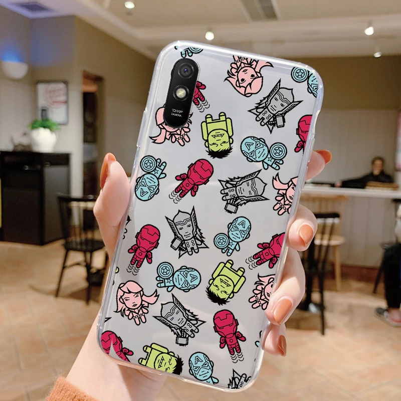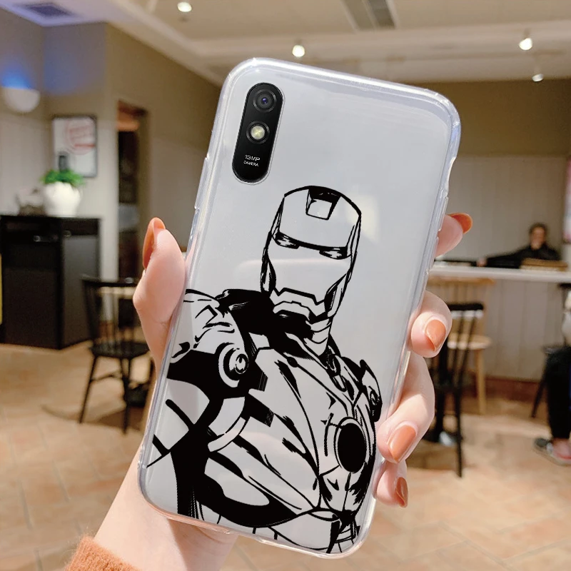 Comprar Para Redmi 9A 9at Funda de teléfono Anime Marvel dibujos animados Funda Shell Capa suave TPU Funda para Xiaomi Redmi 9a Coque Iron Spider-Man transparente