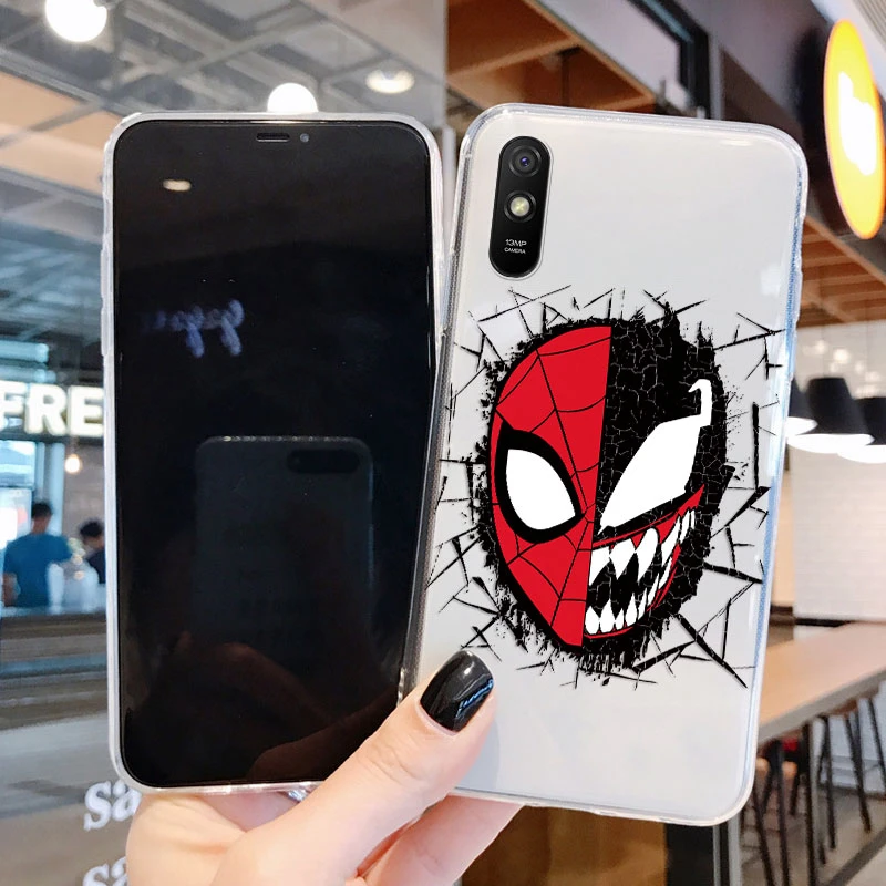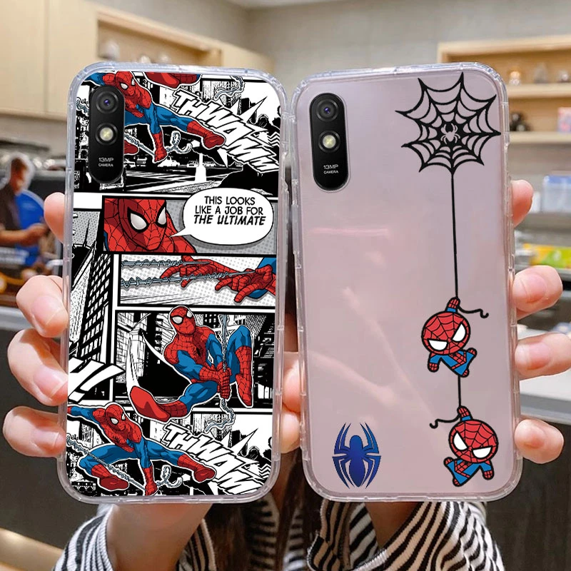 Comprar Para Redmi 9A 9at Funda de teléfono Anime Marvel dibujos animados Funda Shell Capa suave TPU Funda para Xiaomi Redmi 9a Coque Iron Spider-Man transparente