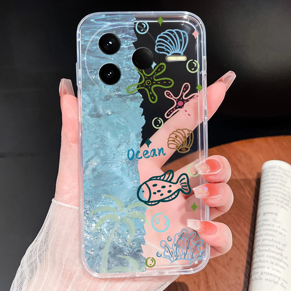 Funda para Teléfono iPhone 17 16e 15 14 13 12 11 Pro Max SE 7 8 Plus, Carcasa de TPU Suave con Tema de Vida Oceánica para iPhone 16
