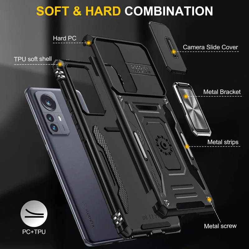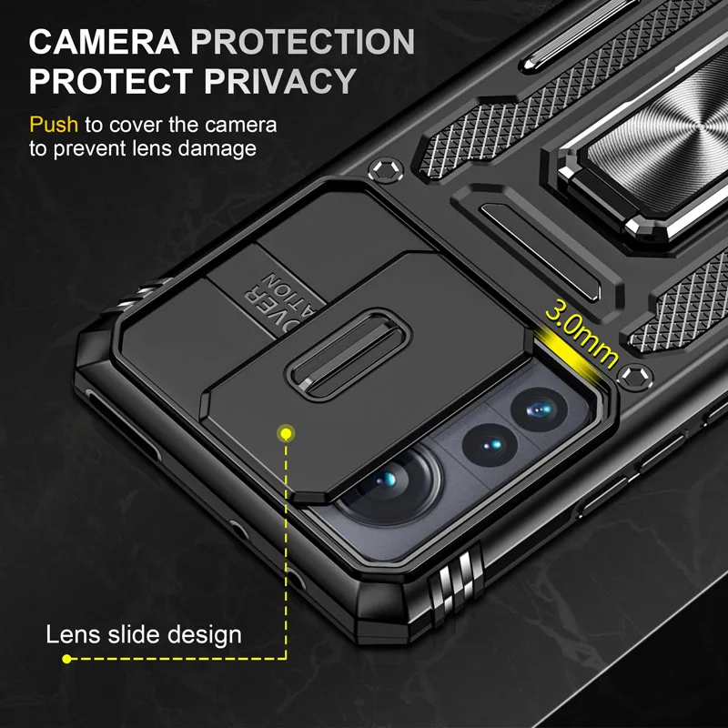 Comprar Para Redmi Note 11 Pro 11s 10 funda deslizante para cámara a prueba de golpes funda armadura para Mi 11T 12Pro soporte magnético para coche cubierta protectora con anillo