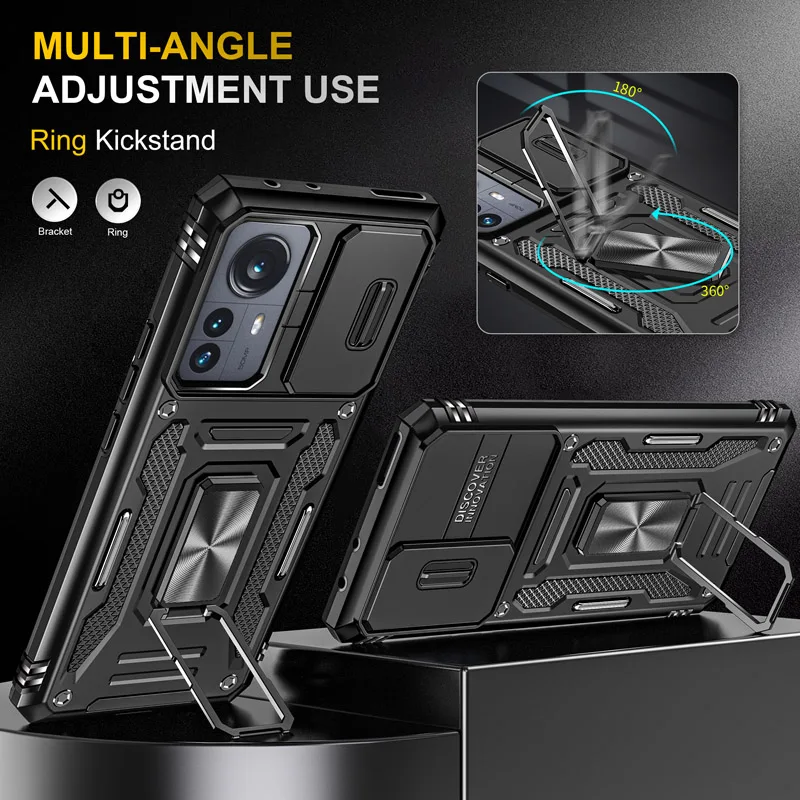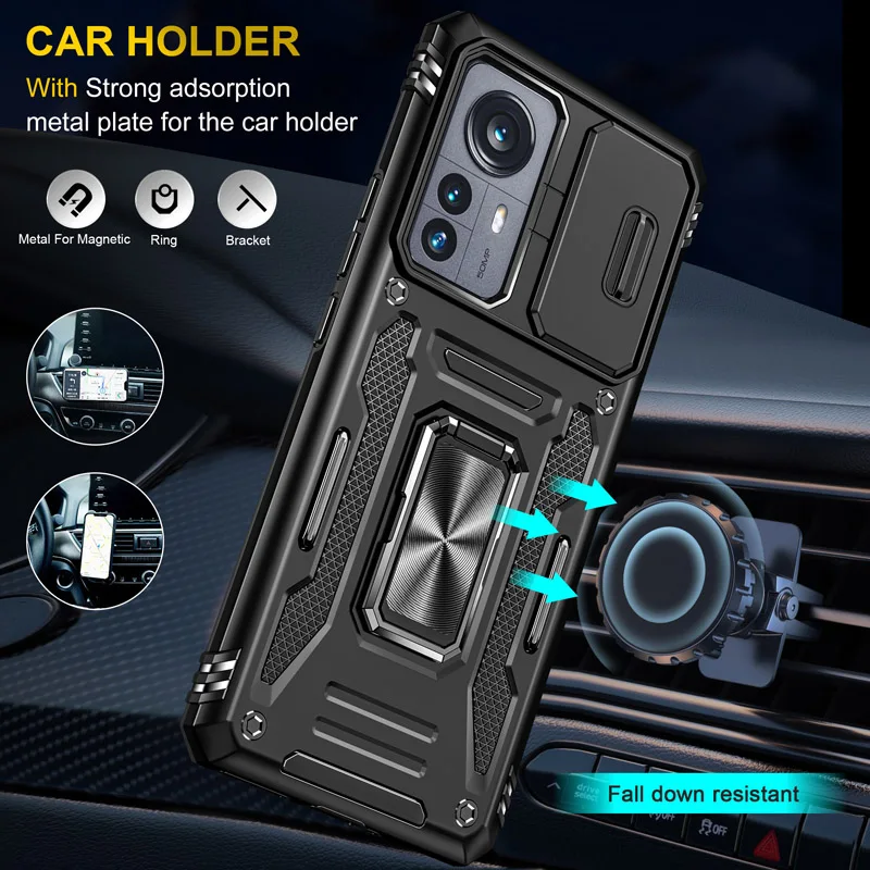 Para Redmi Note 11 Pro 11s 10 funda deslizante para cámara a prueba de golpes funda armadura para Mi 11T 12Pro soporte magnético para coche cubierta protectora con anillo