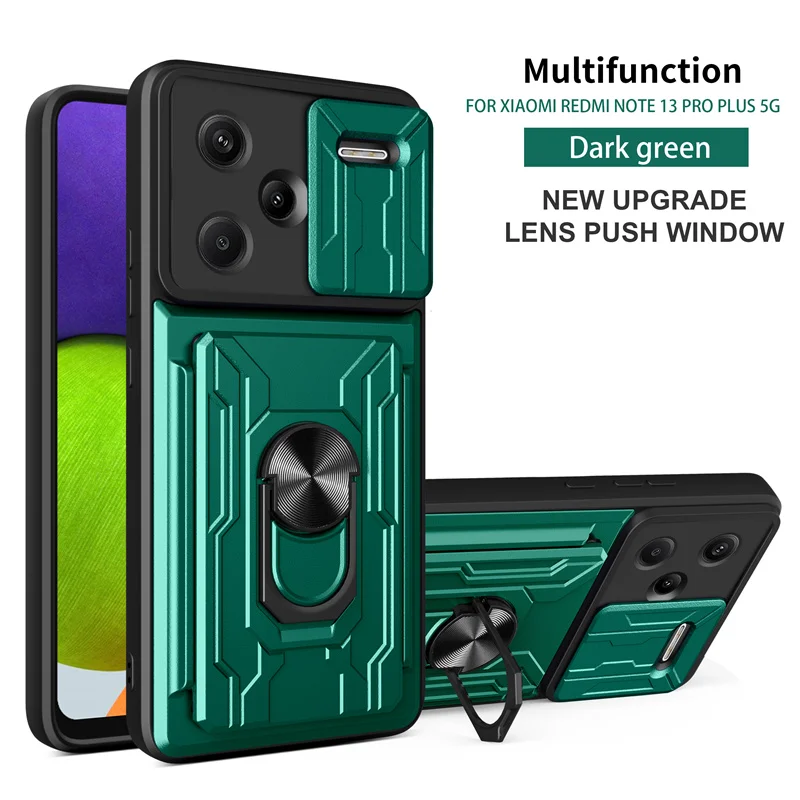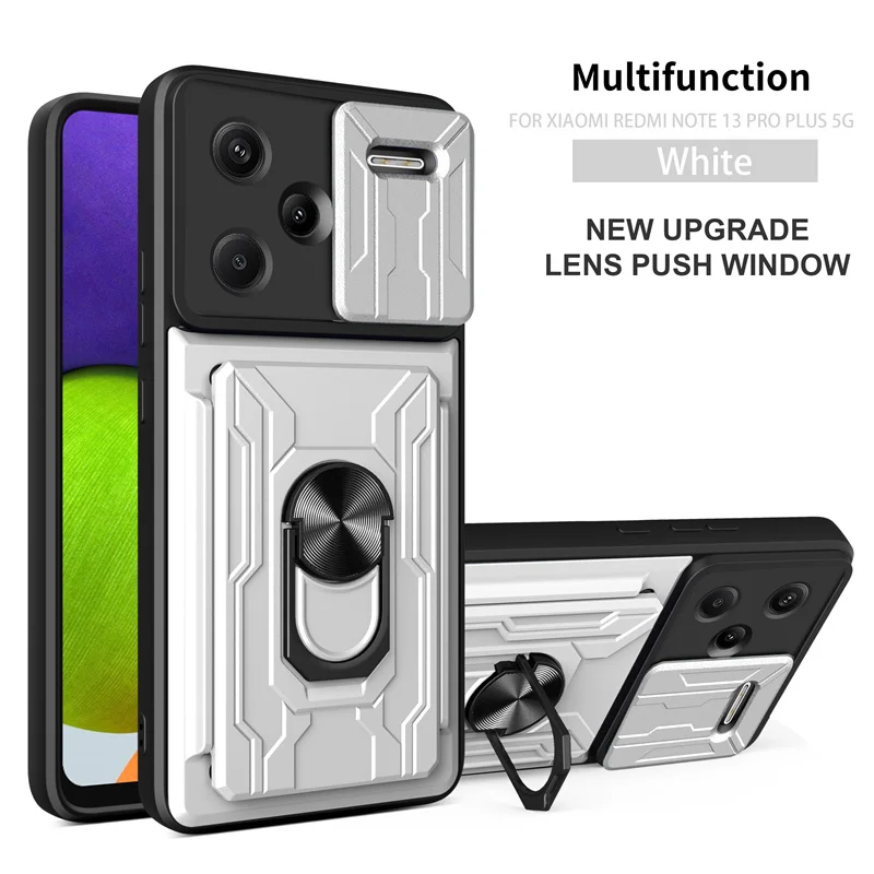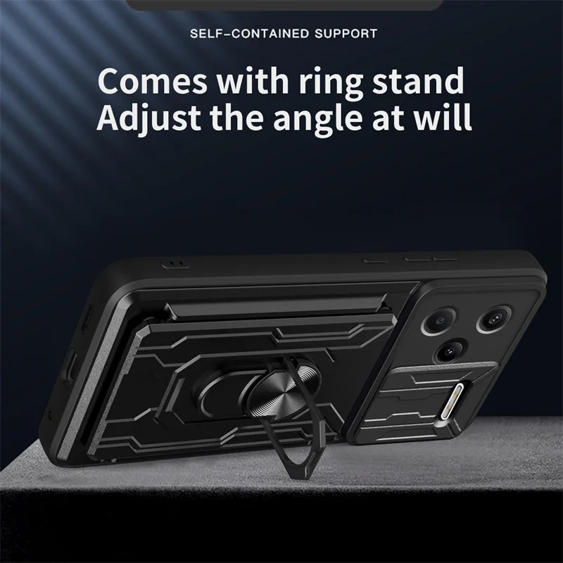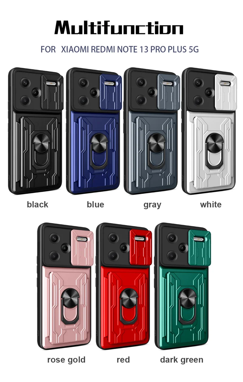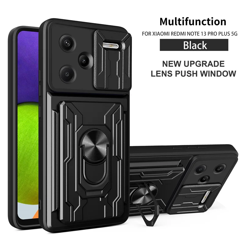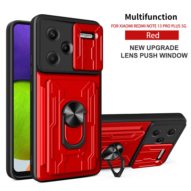 Comprar Para Redmi Note 13 Pro Plus funda con anillo magnético ranura para tarjetas soporte armadura funda de teléfono para Redmy Note 13 Pro + Plus 5G cubierta protectora de lente
