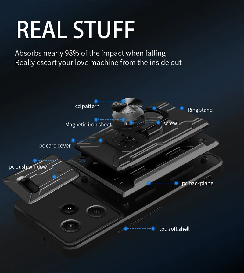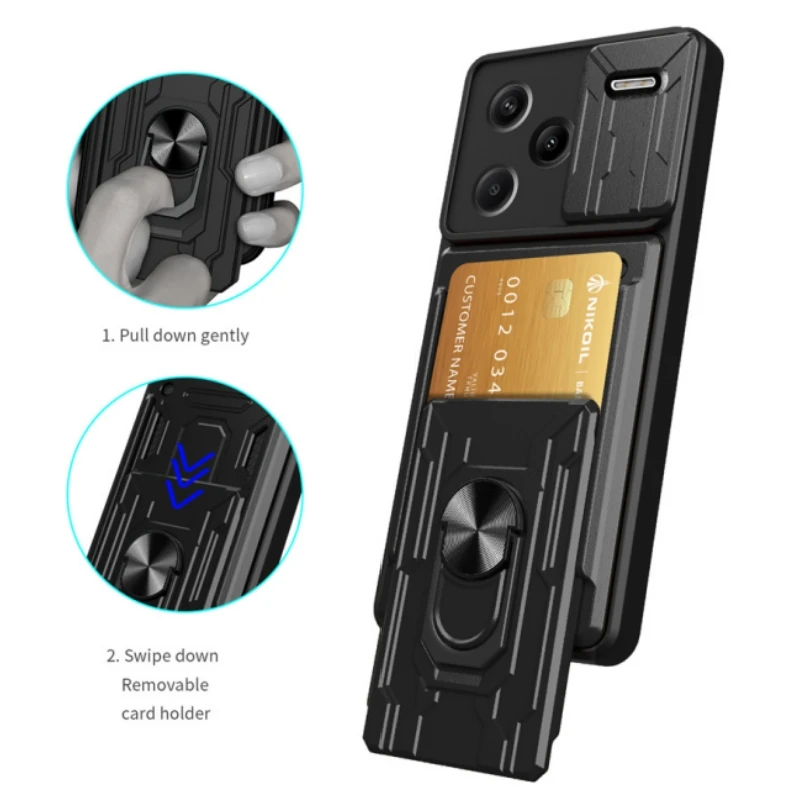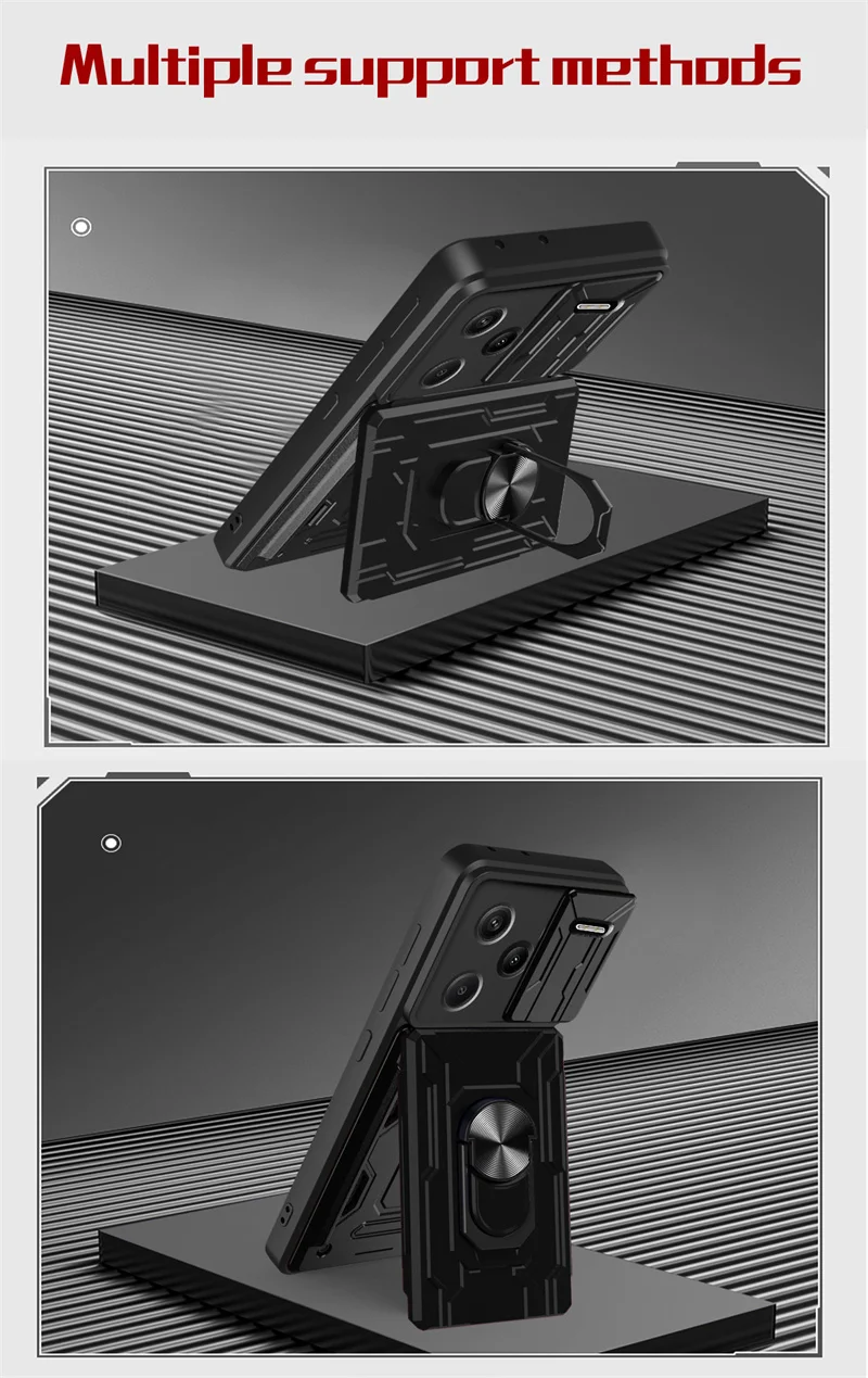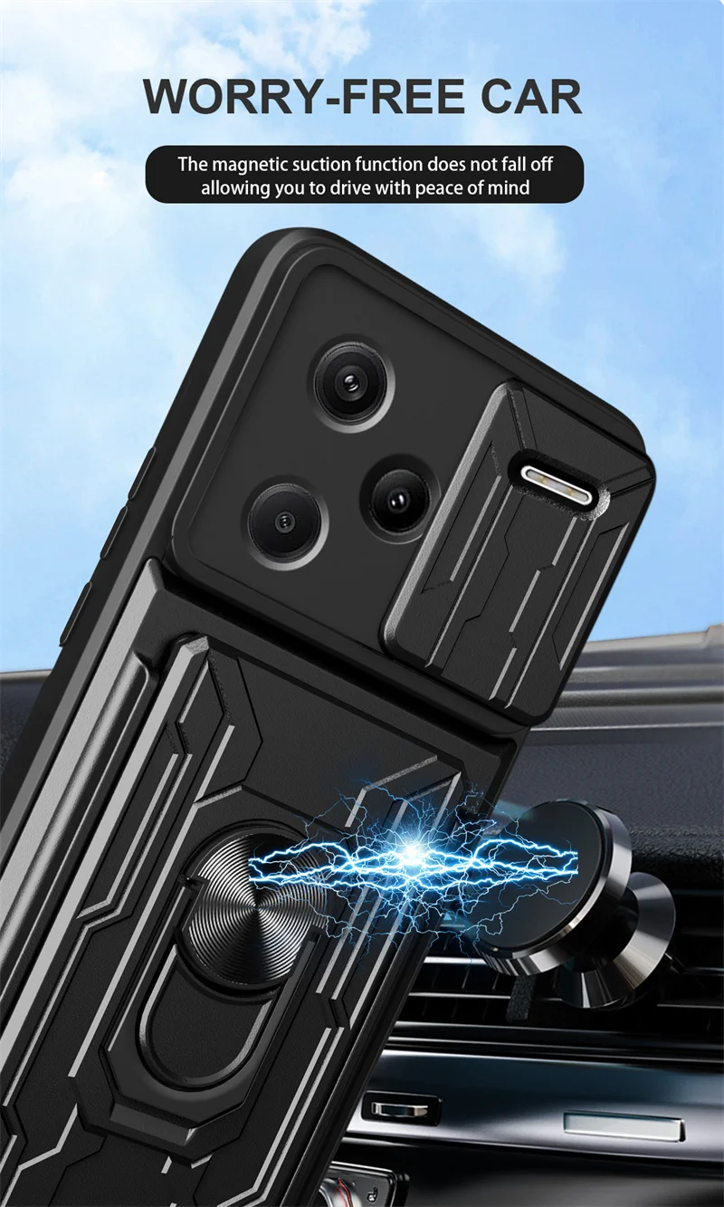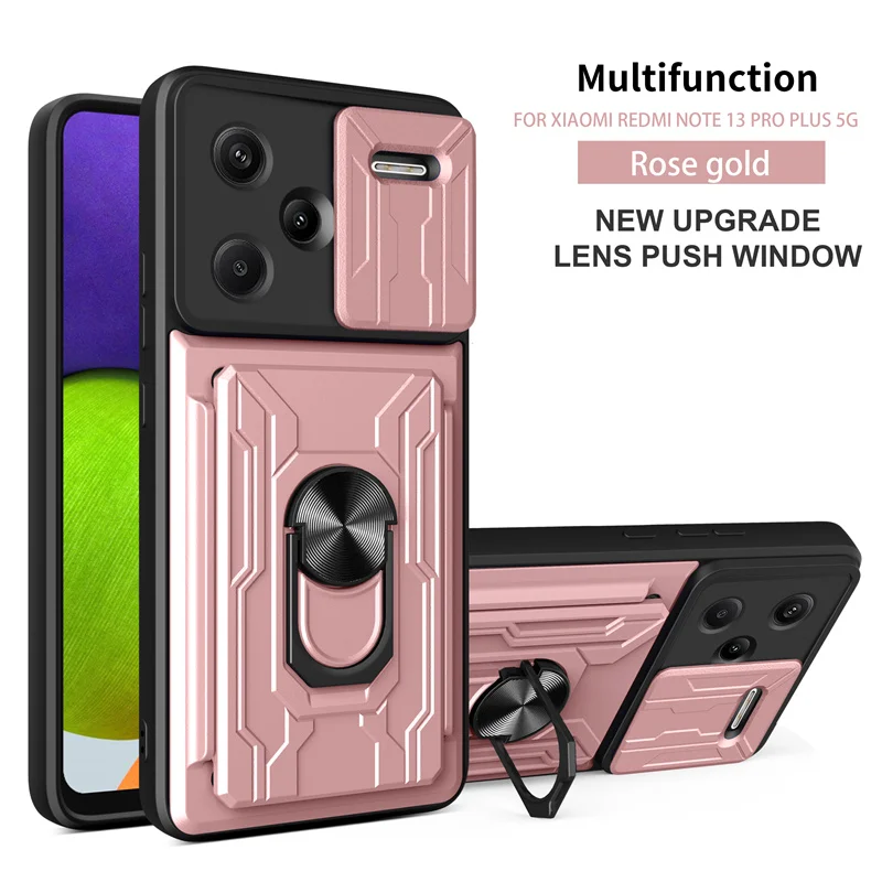 Comprar Para Redmi Note 13 Pro Plus funda con anillo magnético ranura para tarjetas soporte armadura funda de teléfono para Redmy Note 13 Pro + Plus 5G cubierta protectora de lente