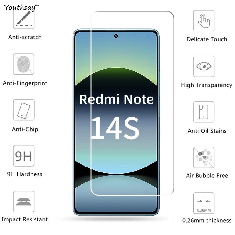 Comprar Para Redmi Note 14S pantalla de vidrio templado Redmi Note 14S Protector de pantalla 9H película protectora de teléfono Redmi Note 14S