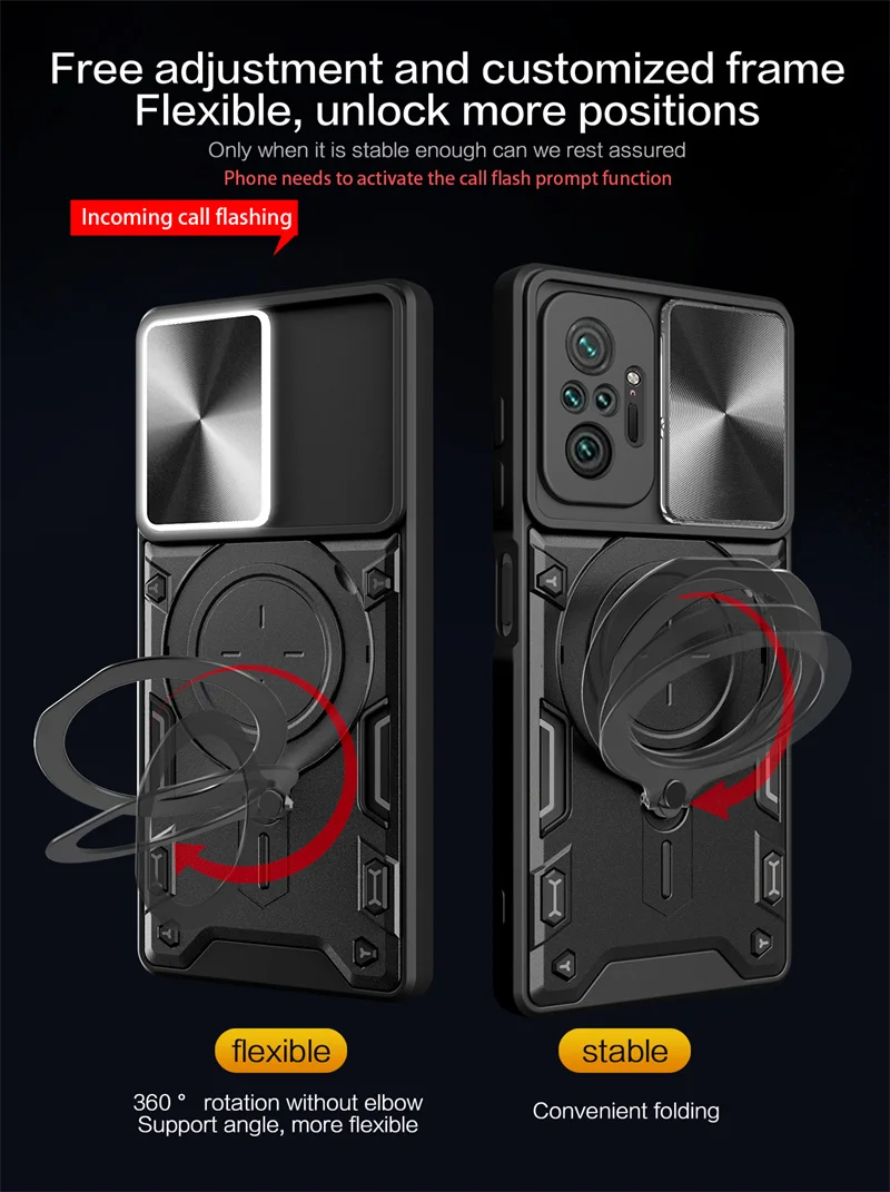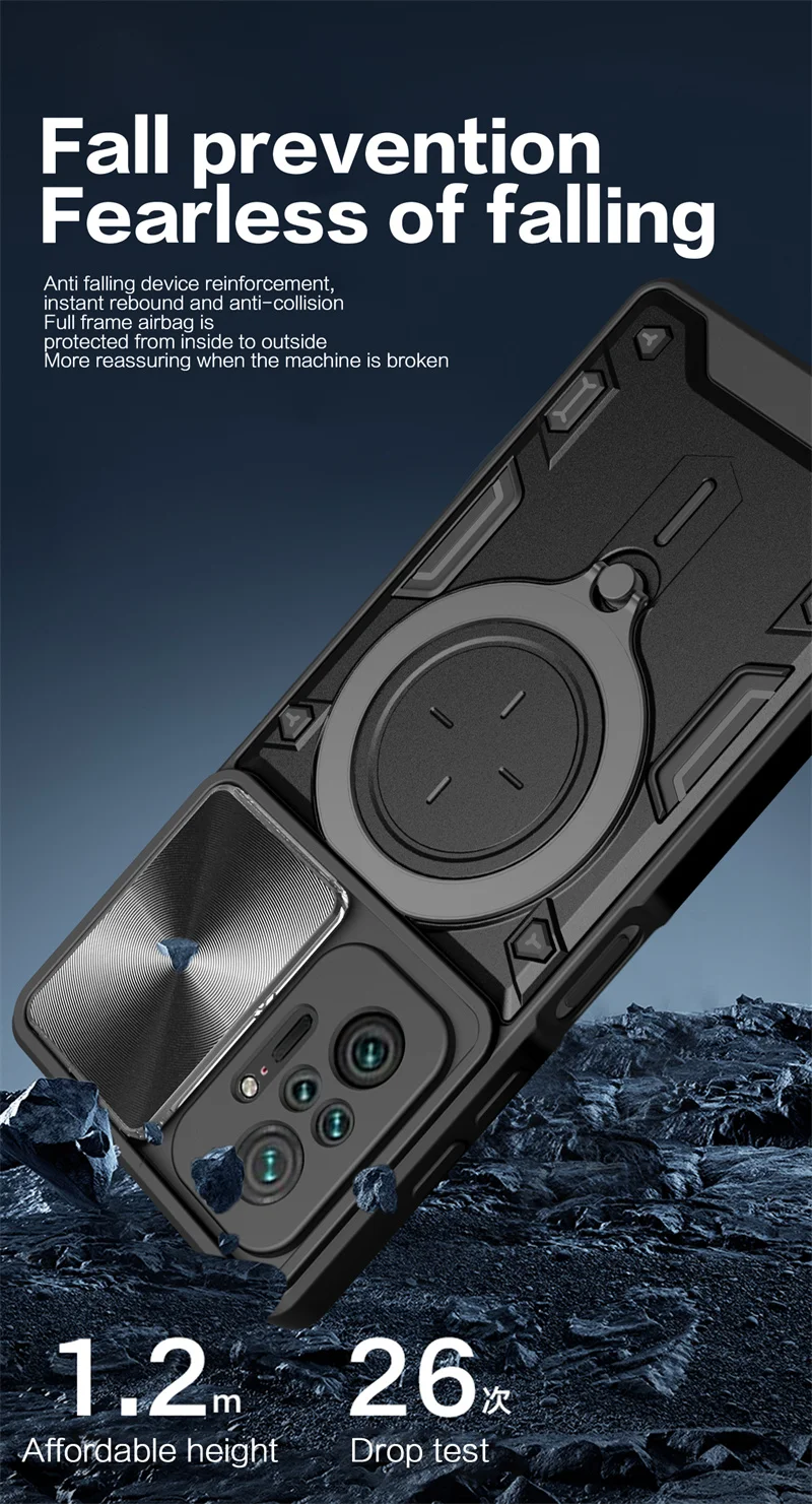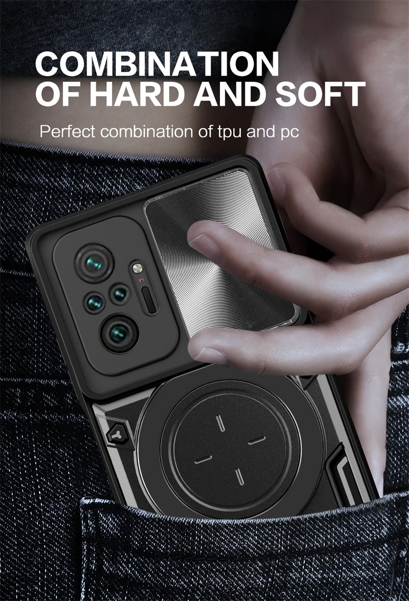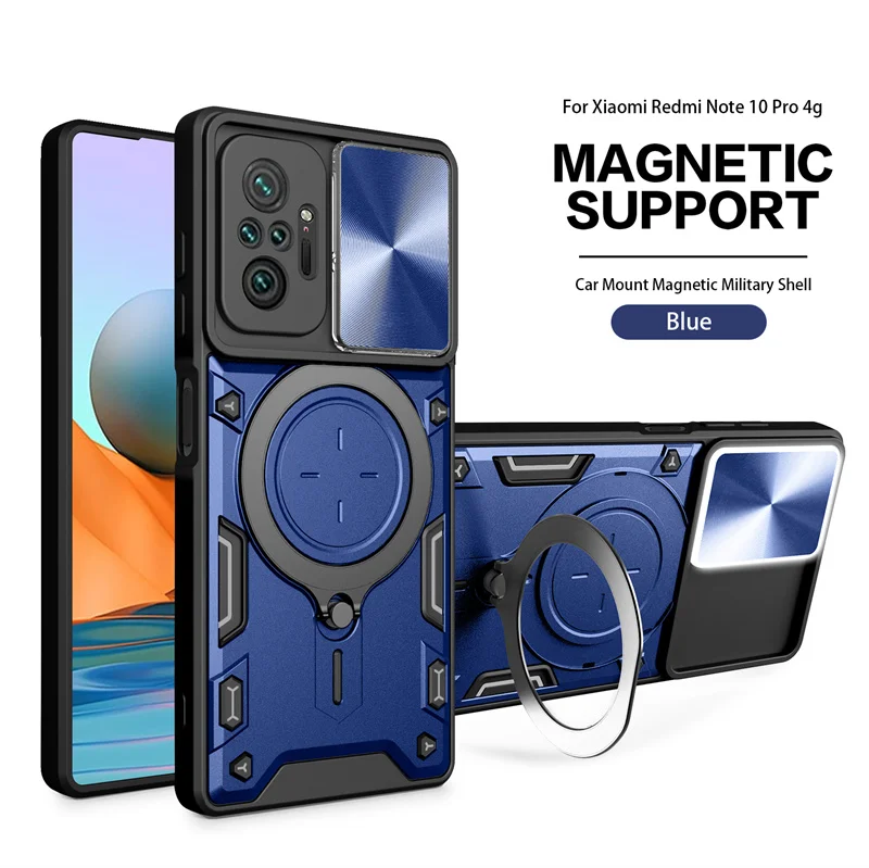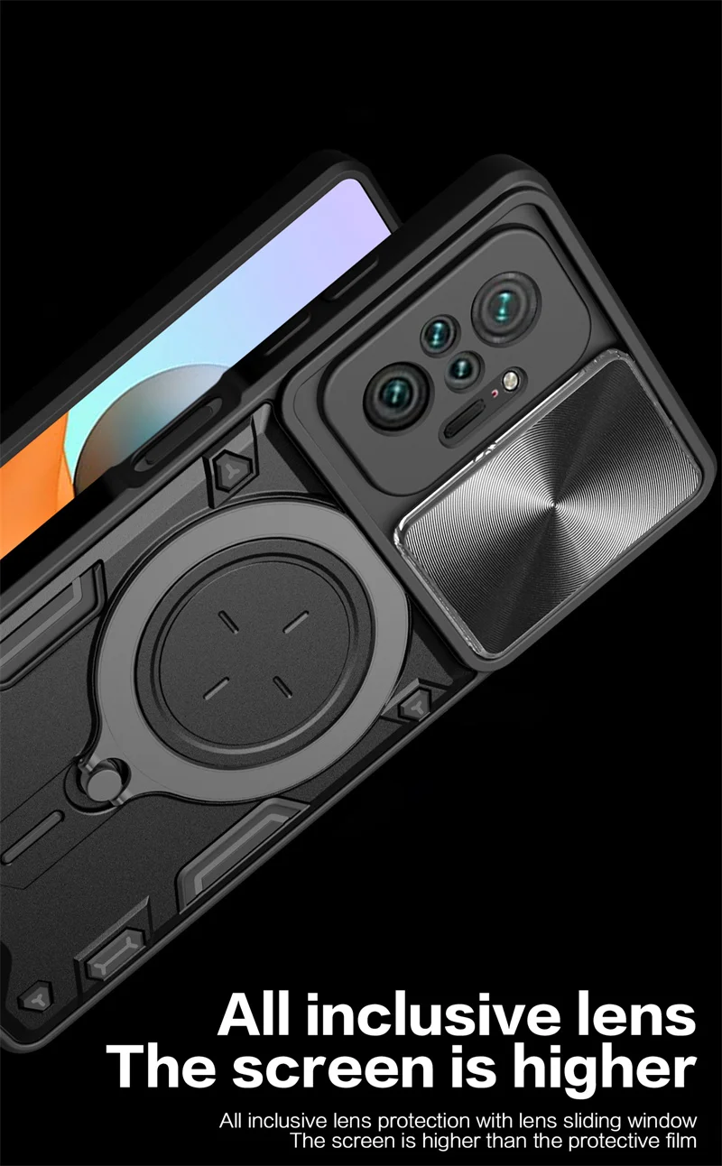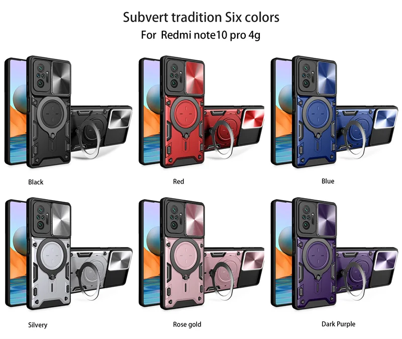 Comprar Para Redmi Note10 Pro funda deslizante lente de cámara proteger armadura anillo soporte funda de teléfono para Xiaomi Redmi Note 10 Pro Max 10S contraportada