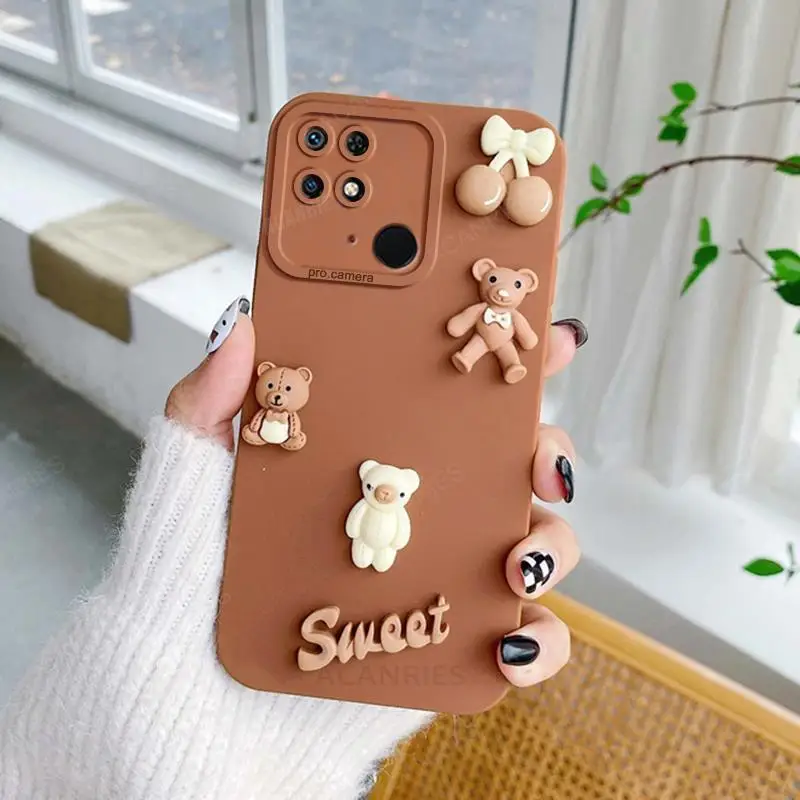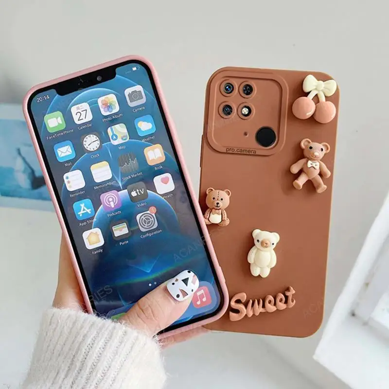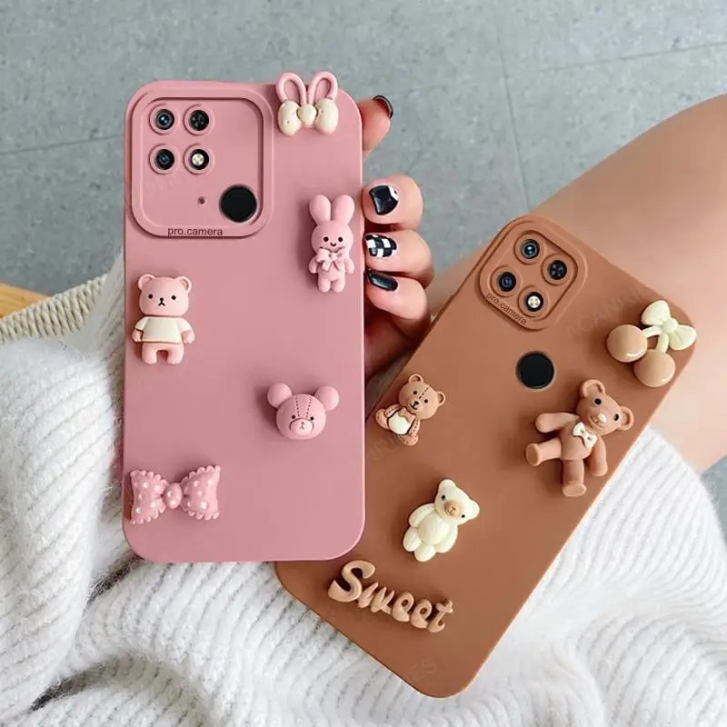 Redmi10c funda de silicona con bonitos osos 3D para Xiaomi Redmi 10c 10a 12c 12 13c 4g 10 9a 9c 9at A1 A2 funda trasera de dibujos animados Redmi9c