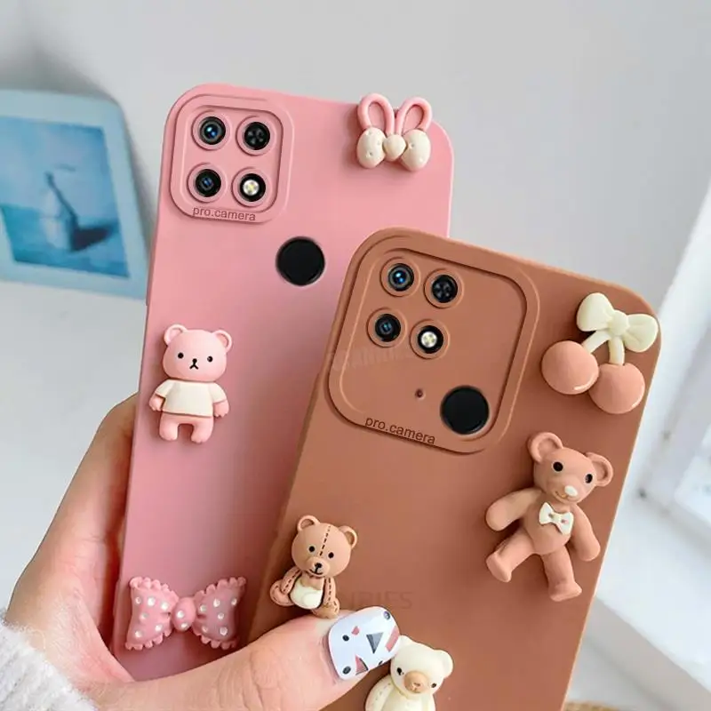 Redmi10c funda de silicona con bonitos osos 3D para Xiaomi Redmi 10c 10a 12c 12 13c 4g 10 9a 9c 9at A1 A2 funda trasera de dibujos animados Redmi9c