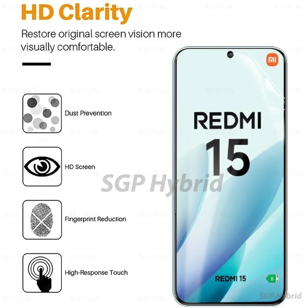 Protector de pantalla suave y transparente para Redmi 15 4G, película de hidrogel en Xiaomi Redmi15 Redmy Radmi 15 5G Global 2025 6,9 pulgadas, sin vidrio, 4 Uds.