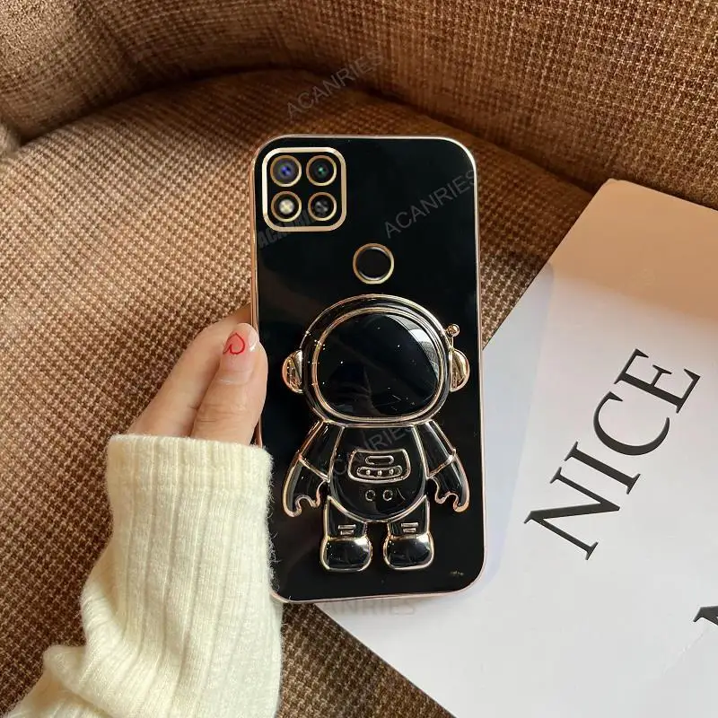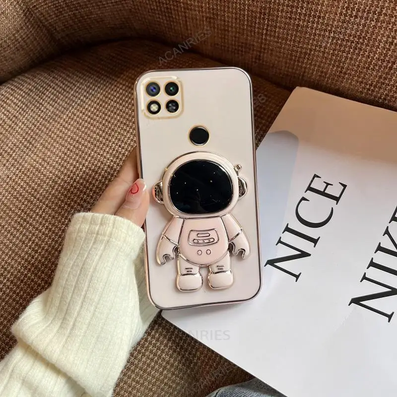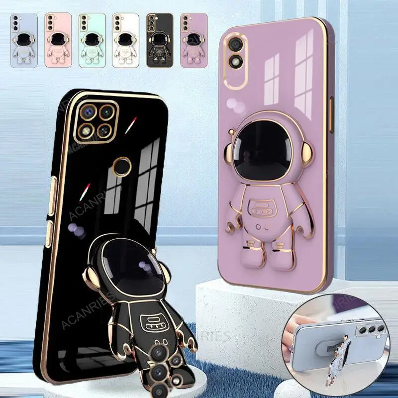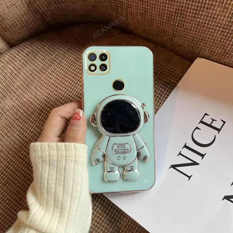 Soporte de astronauta Redmi9c, funda chapada de lujo para 9c Nfc 9a 9t 10 10a 10c 9at A1, funda de silicona con soporte Redmi10c