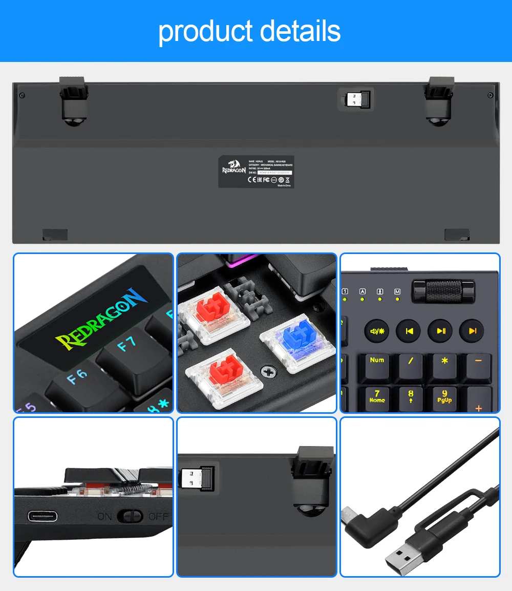 Más detalles redefinibles: junto con el material sólido del tanque es compatible con el controlador del software central de Redragon, retroiluminación de 16,8 millones de colores, reasignación de teclas estándar y combinaciones de teclas infinitas están disponibles para re-mod personal.